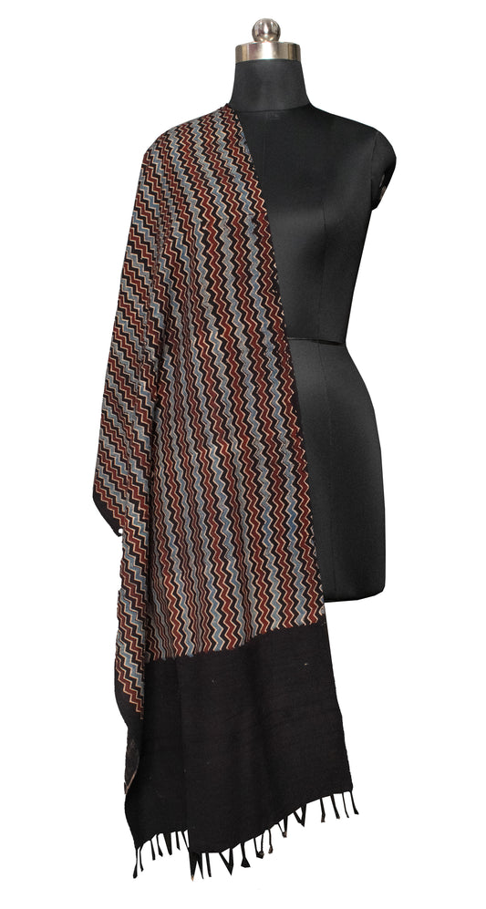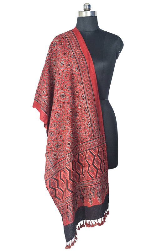 Ajrakh Kala Cotton Natural Dye Hand Block Print Stole With Tassels - SKU : DB28501A