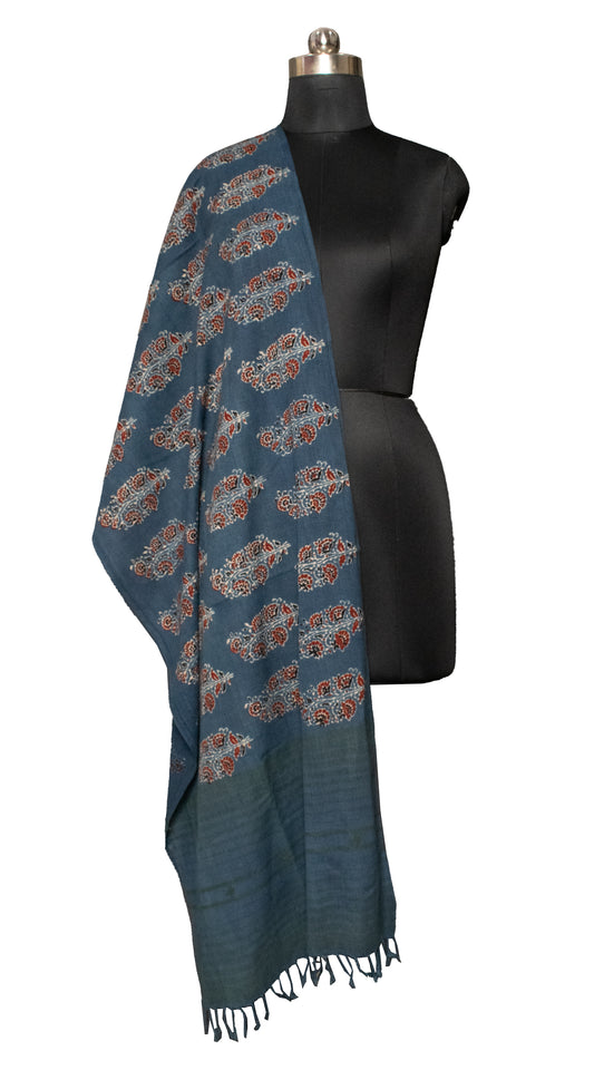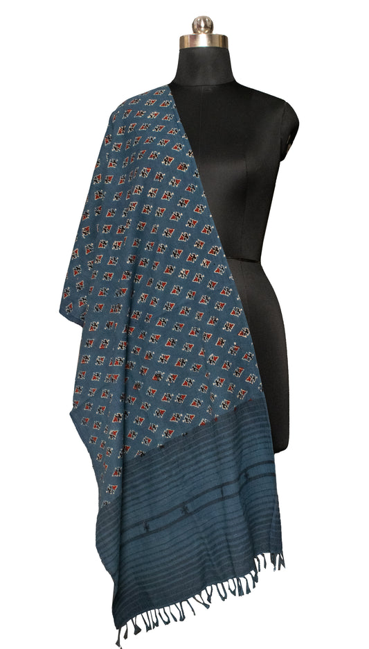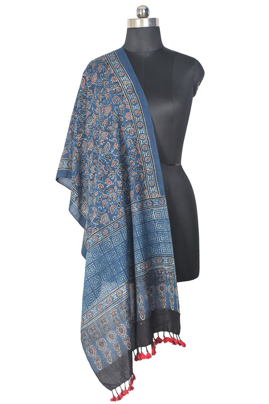 Ajrakh Kala Cotton Natural Dye Hand Block Print Stole With Tassels - SKU : DB28501C