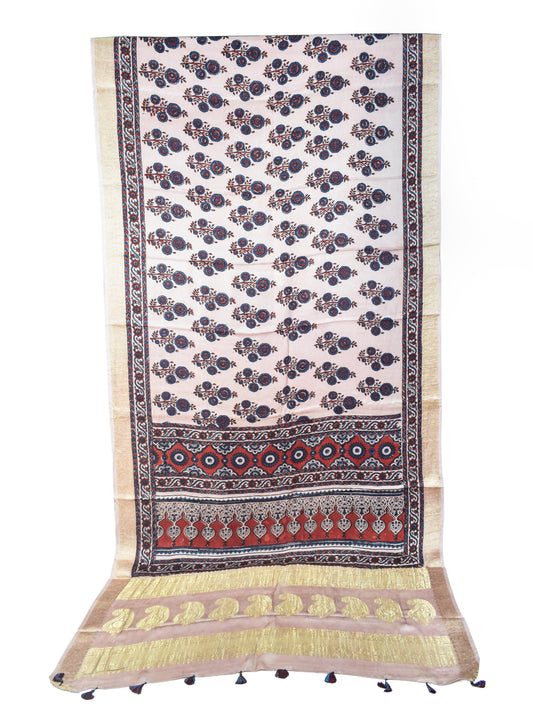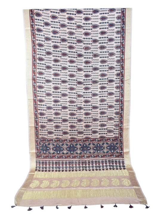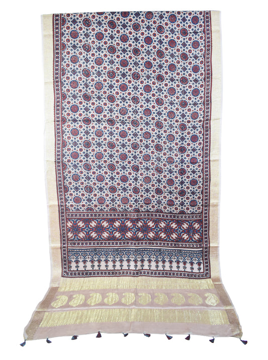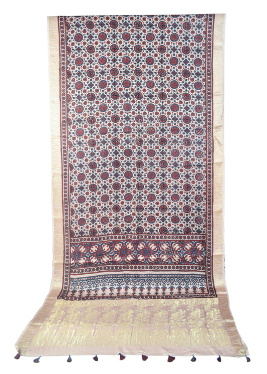 CRAFT : Ajrakh Hand Block Printed with Natural Dyes MATERIAL : Mashru Silk ( 60:40 Viscose...