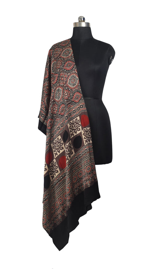 Ajrakh Modal Silk Natural Dye Hand Block Print Dupatta - 2.5 Mtr Length - SKU : AI27802Q