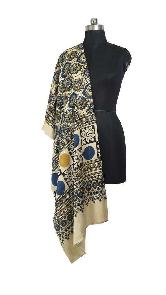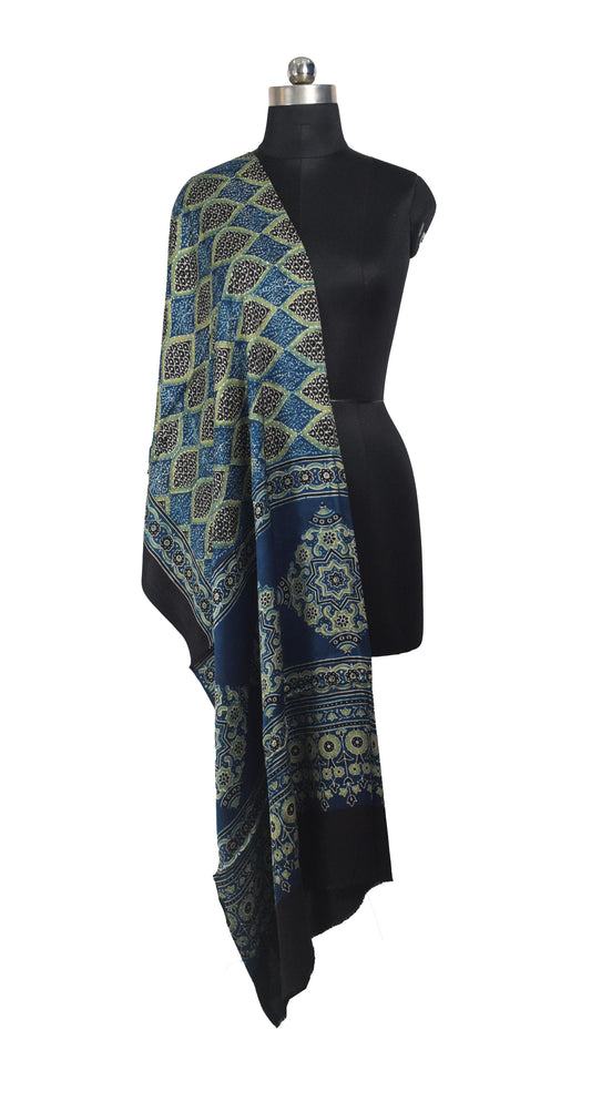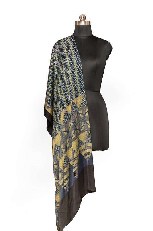 Ajrakh Mashru Silk Natural Dye Hand Block Print Stole