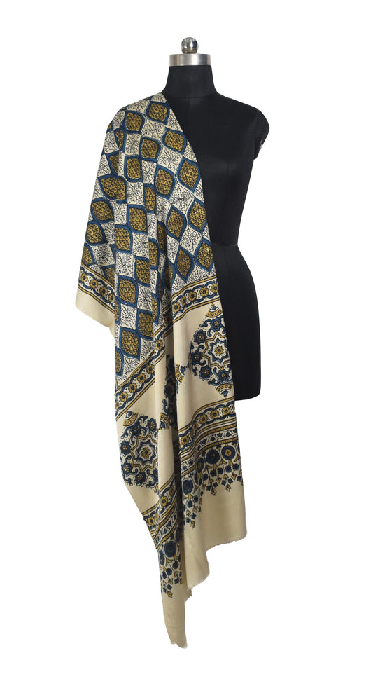 Ajrakh Modal Silk Natural Dye Hand Block Print Dupatta - 2.5 Mtr Length - SKU : AI27802W