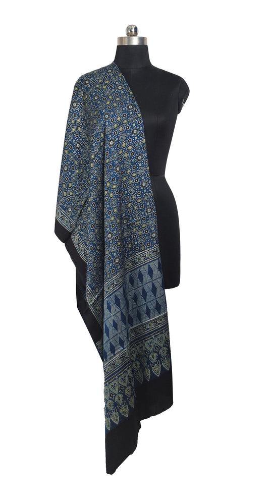 Ajrakh Modal Silk Natural Dye Hand Block Print Dupatta - 2.5 Mtr Length - SKU : AI27802A