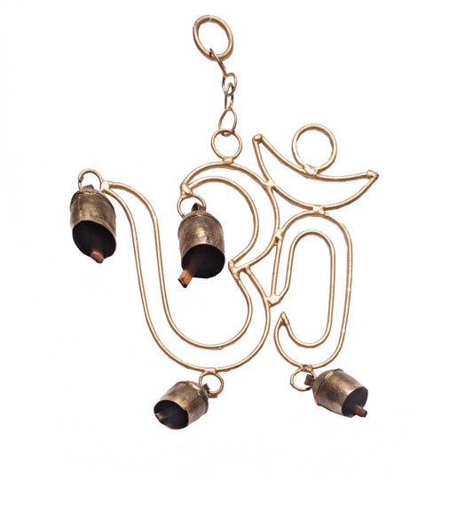 Hand Made Metal Bells Wrought Iron Copper-Zinc Coated Home Décor Chimes Cow Bell - Om - 4 Bell - SKU: 0018