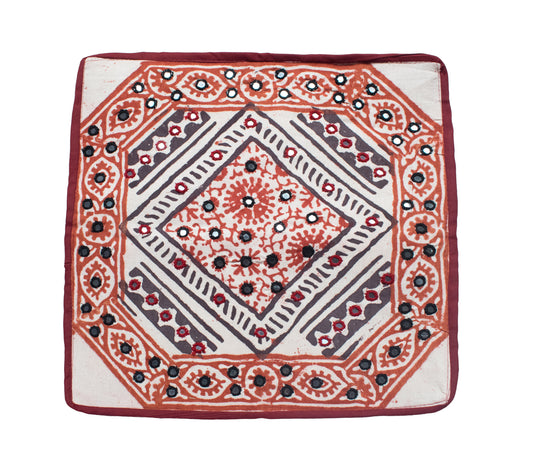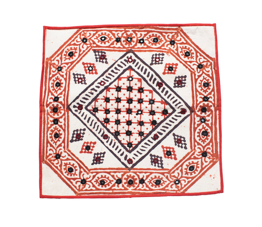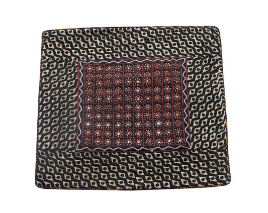 - UNIQUE FEATURE : Beautiful Mirror Work Hand Embroidery on Batik Hand Block Print Cotton High Quality Fabric. Kutchhi Simple Mirror Work is an Embroidery practiced in Kutch. This Hand Embroidered Cushion Cover are beautiful décor for your Drawing Room Upholstry,Hand Embroidery Mirror and Thread Work Art Work. Suitable for Wall Decoration Hanging and Table Top ( Beneath Glass)