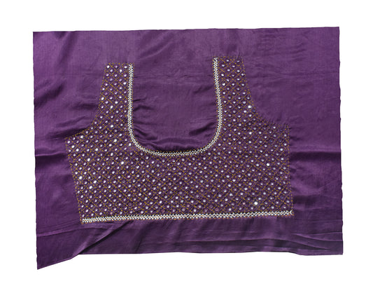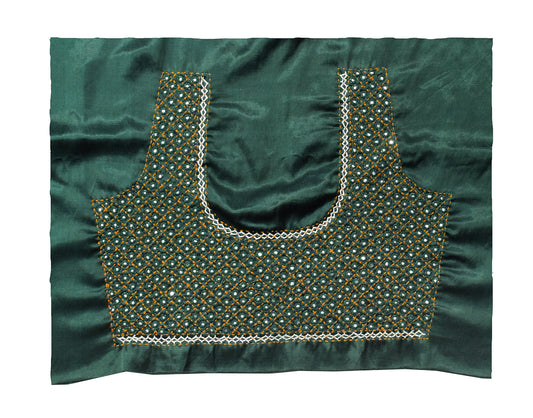 Pakko Work Mashru Silk Hand Embroidered Mirror Work Blouse - Unstitched - 1 Mtr Length - SKU : SH10B01A
