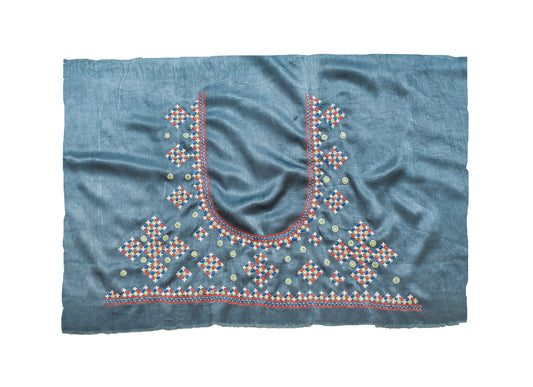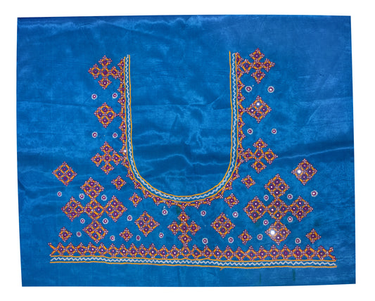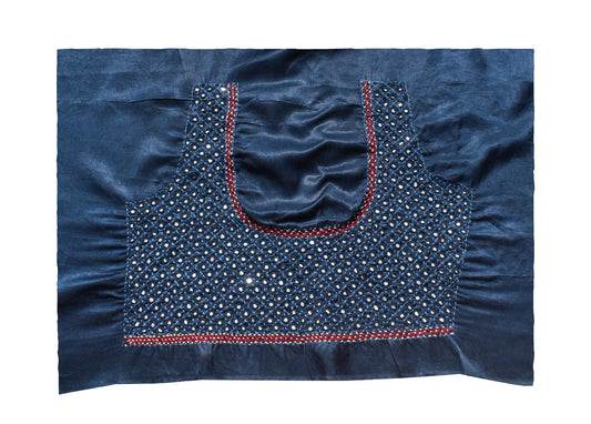 Mutva Work Mashru Silk Hand Embroidery Fine Mirrorwork Blouse - Unstitched - 1 Mtr Length - SKU : SH05902B