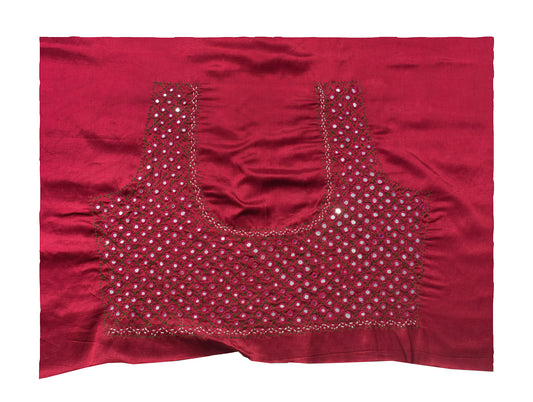 Neran Work Mashru Silk Hand Embroidery Fine Mirrorwork Blouse - Unstitched - 1 Mtr Length - SKU : SH05901A