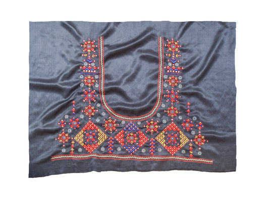 Mutva Work Mashru Silk Hand Embroidery Blouse - Unstitched - 120 cms Length - SKU: RD19304A
