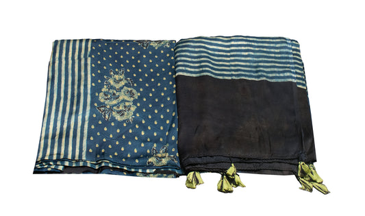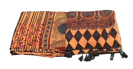 Ajrakh Mashru Silk Natural Dye Hand Block Print Stole