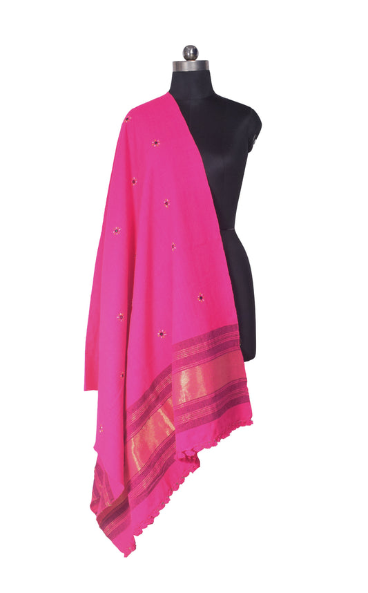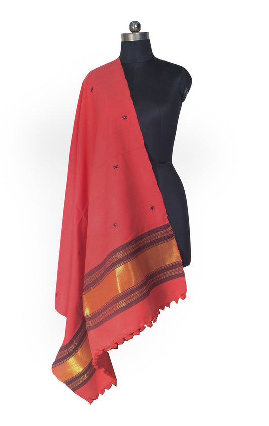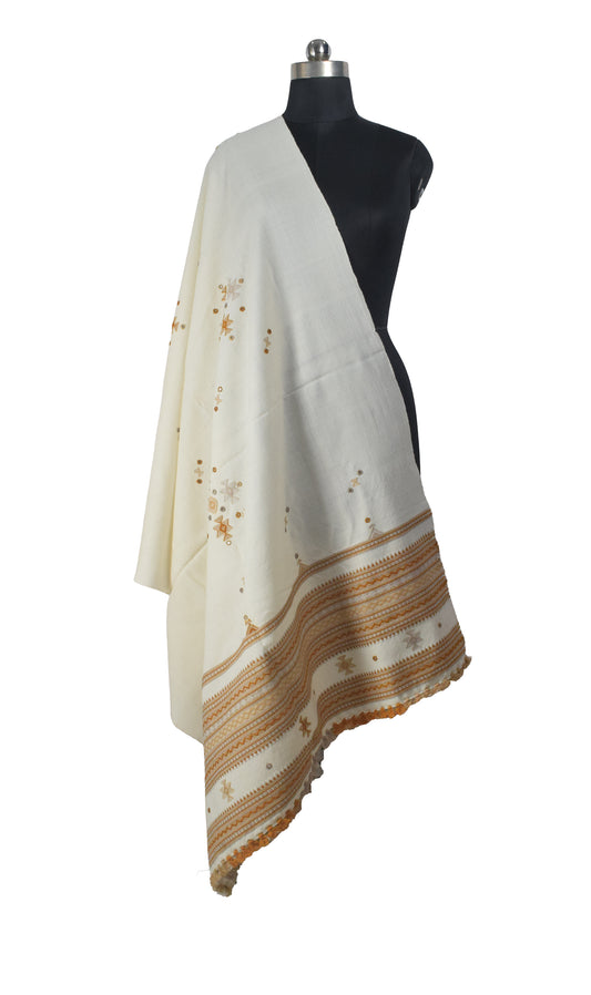 Neran Work Wool Small Mirror Work Hand Embroidery Shawl With Golden Border - 2.1 Mtr Length - SKU : BM09101C