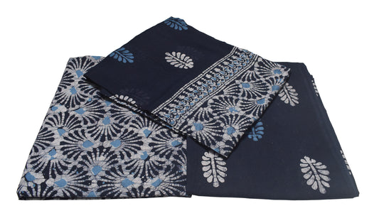 Wax Batik Cotton Three Colour Full Printed Hand Block Print Dress Material with 44 Inch wide Dupatta - 2.5 Mt Top - SKU : SA25601B