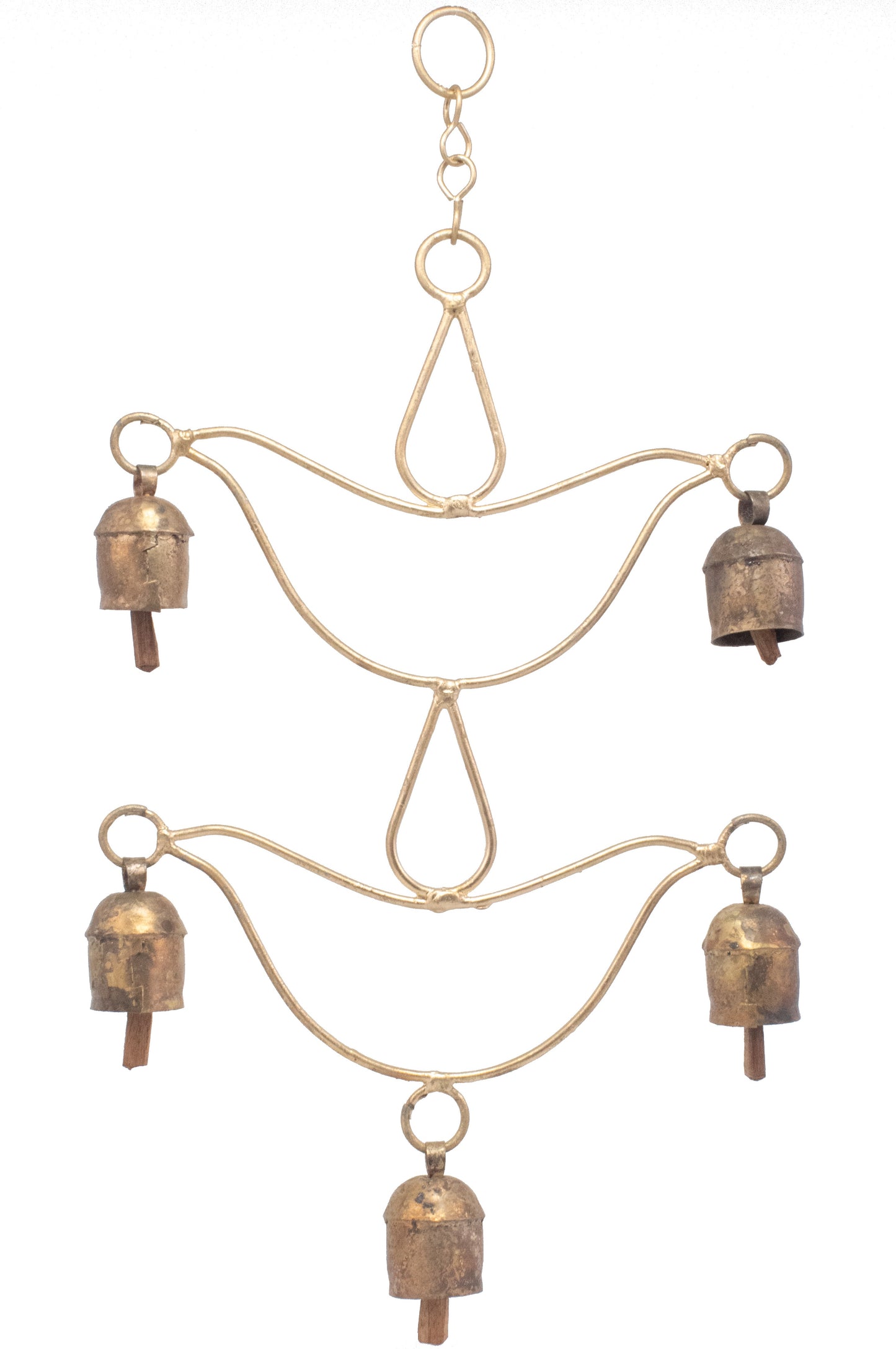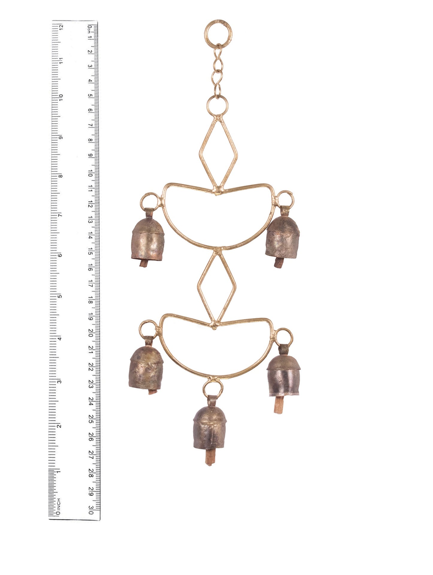 Hand Made Metal Bells Wrought Iron Copper-Zinc Coated Home Décor Chimes Cow Bell - Double Diva - 5 Bells - SKU: 0026