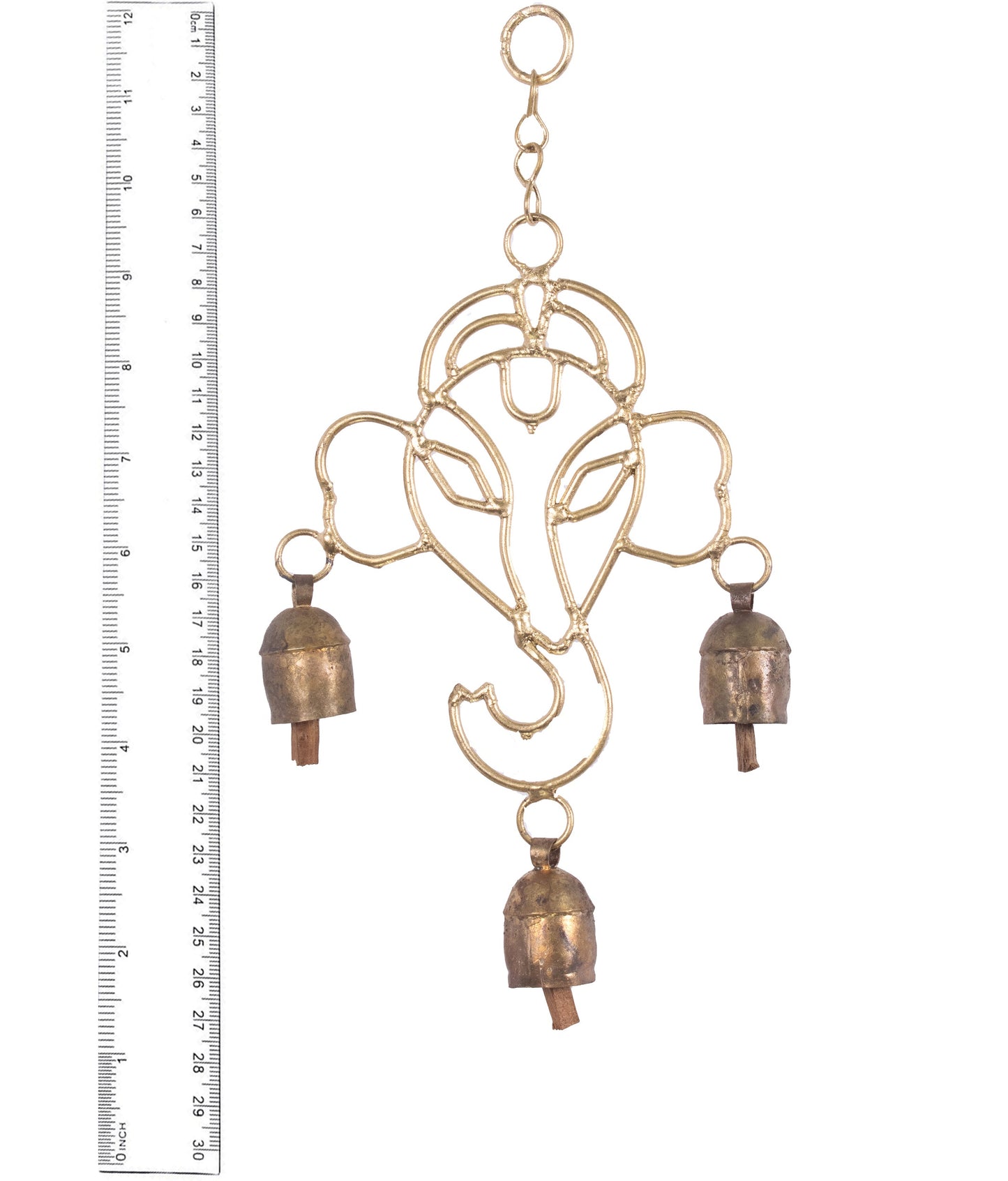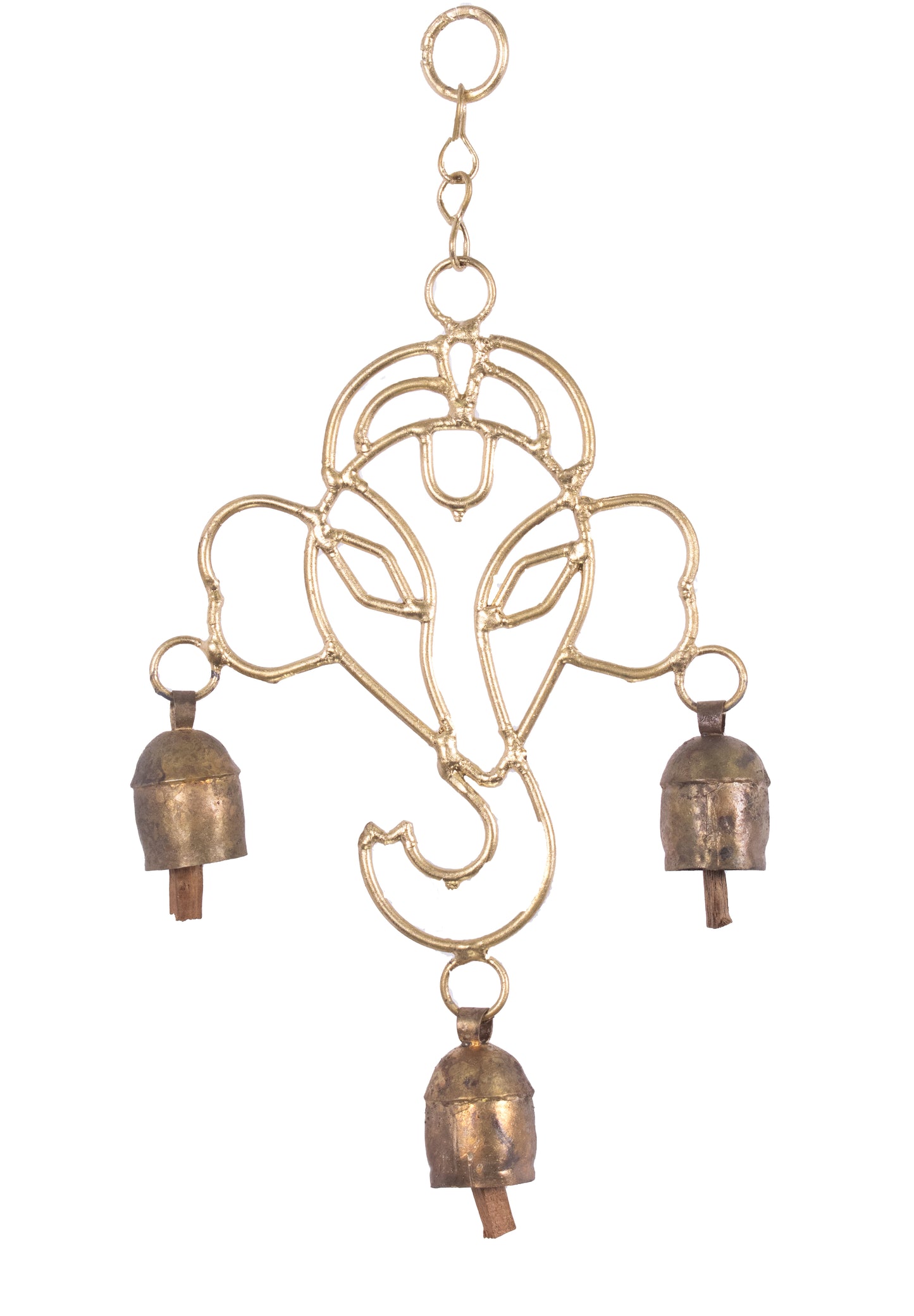 Hand Made Metal Bells Wrought Iron Copper-Zinc Coated Home Décor Chimes Cow Bell - Ganesh - 3 Bells - SKU: 0035