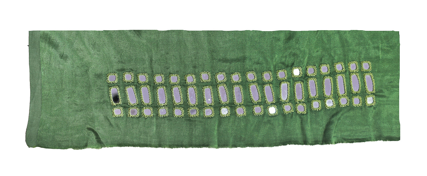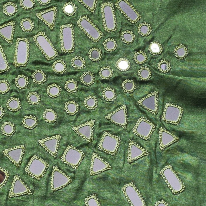 * UNIQUE FEATURE : Mirrors are Cut in Geomatrical Shaped and incorporated on Mashru Silk base with nearly finished fine Hand Embroidery Work