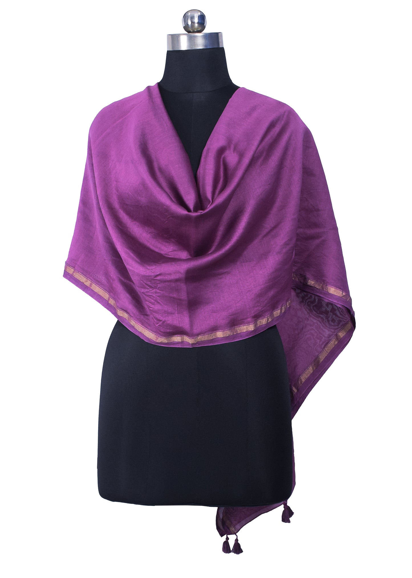 Plain Dyeing Chanderi Silk Plain Hand Dyed Dupatta 36 Inch Width - with Tassels - 2.4 Mtr Length - SKU : ID18304L