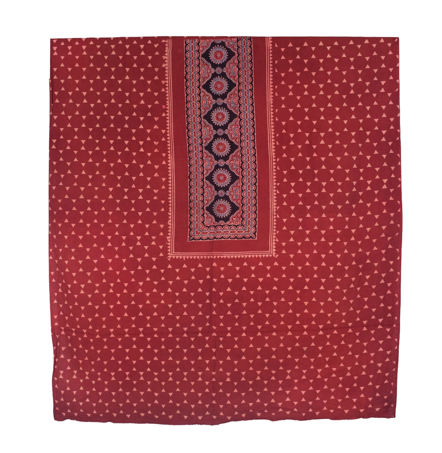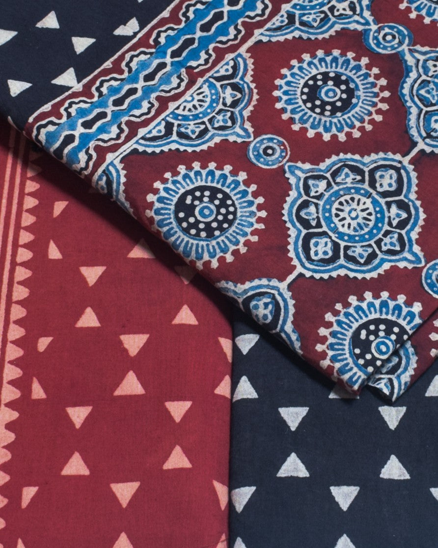 Ajrakh Cotton Natural Dye Three Colour Full Printed Hand Block Print Dress Material with 44 Inch wide Dupatta - 2.5 Mt Top - SKU : AI03501O