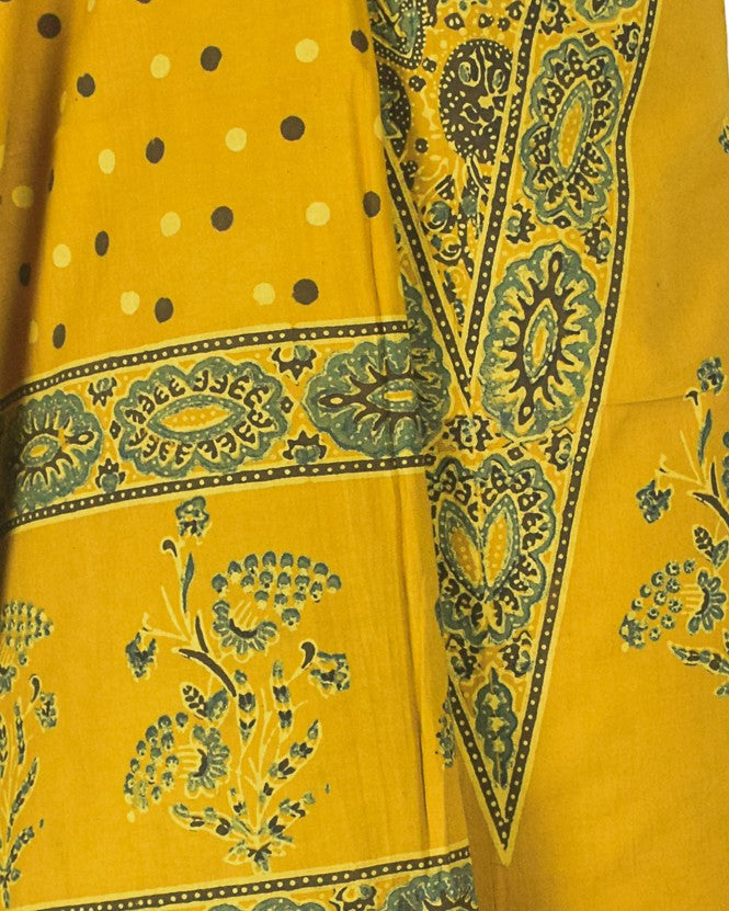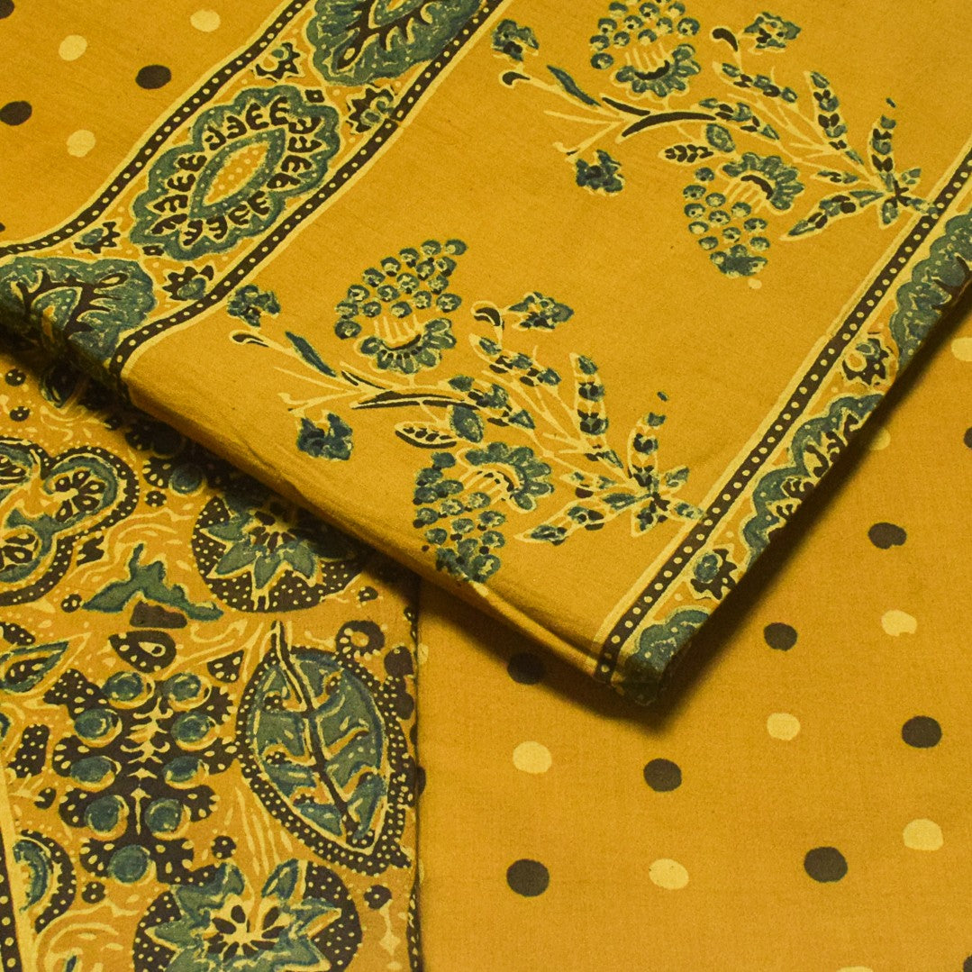 Ajrakh Cotton Natural Dye Three Colour Full Printed Hand Block Print Dress Material with 44 Inch wide Dupatta - 2.5 Mt Top - SKU : ID26501G