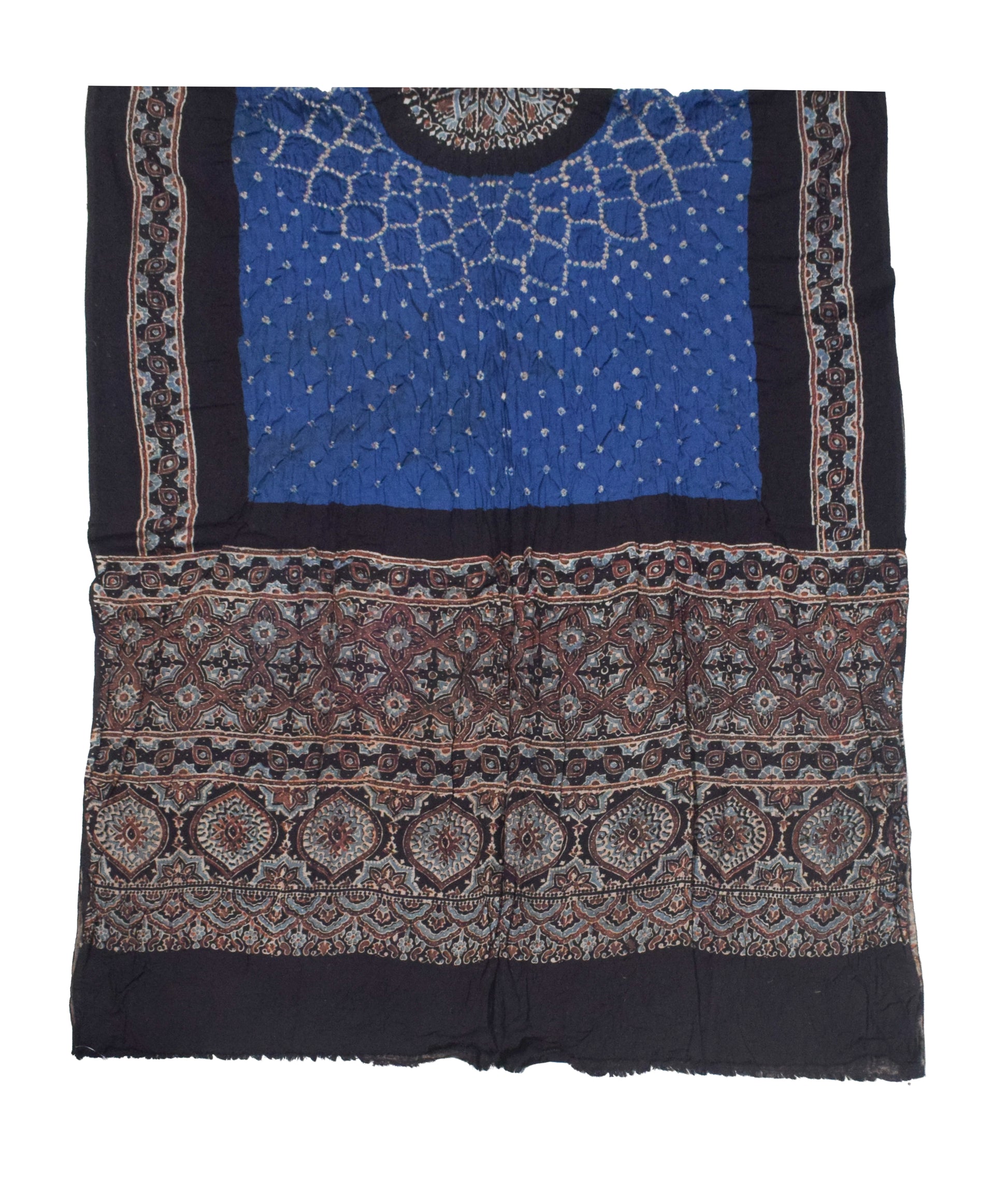 Ajrakh Satin Cotton Part Natural Dye Hand Block Print Dress Material with Bandhej Bottom and Dupatta - 2.5 Mt Top - SKU : MS24A01I