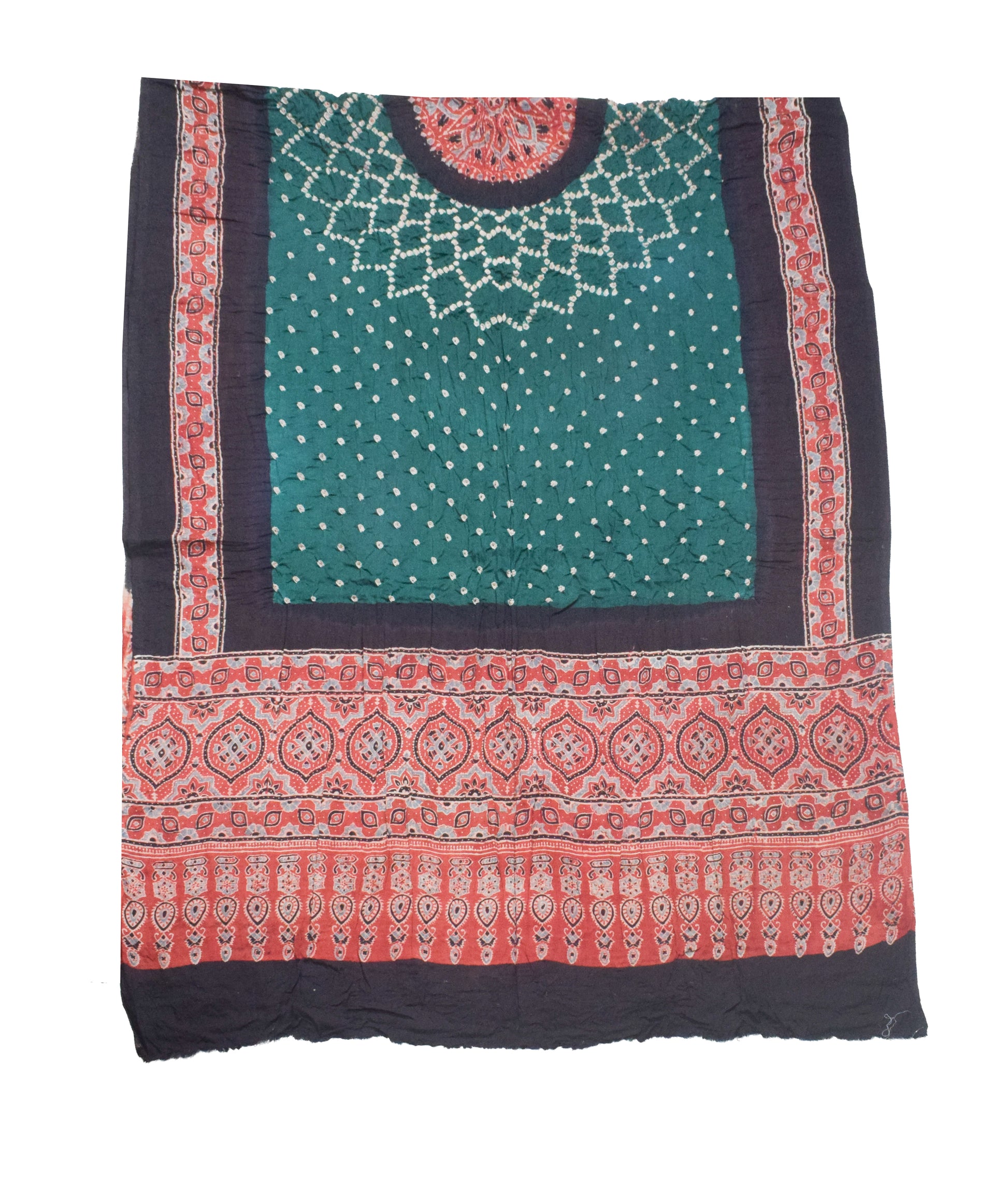 Ajrakh Satin Cotton Part Natural Dye Hand Block Print Dress Material with Bandhej Bottom and Dupatta - 2.5 Mt Top - SKU : MS24A01B
