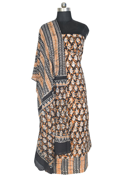 Wax Batik Cotton Three Colour Full Printed Hand Block Print Dress Material with 44 Inch wide Dupatta - 2.5 Mt Top - SKU : RA05401M
