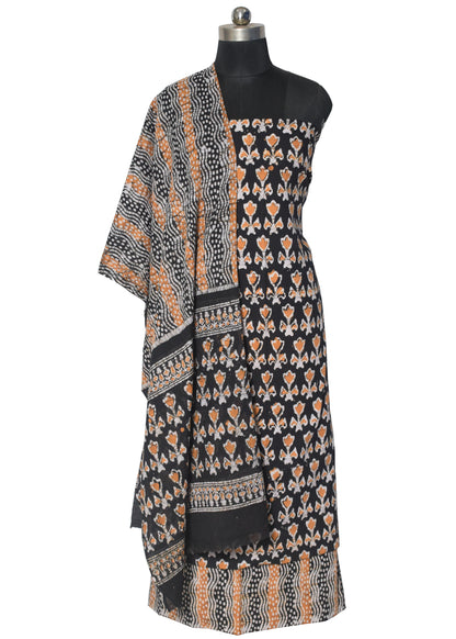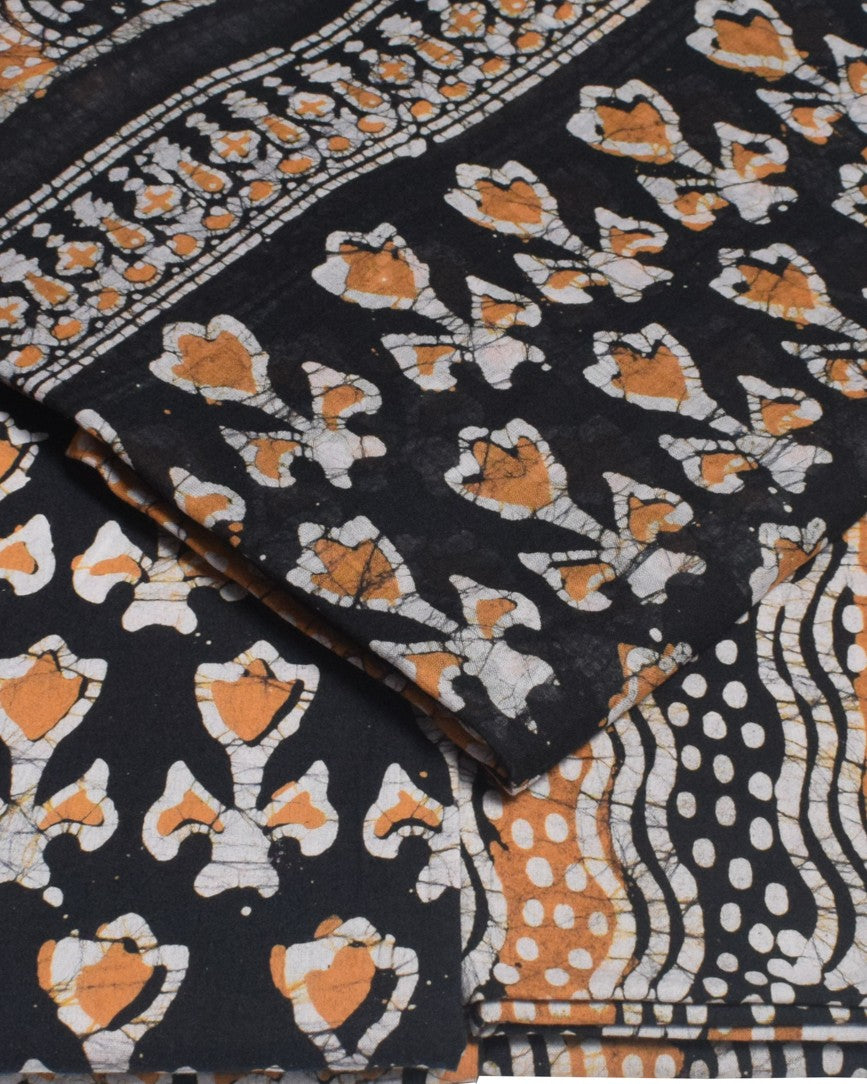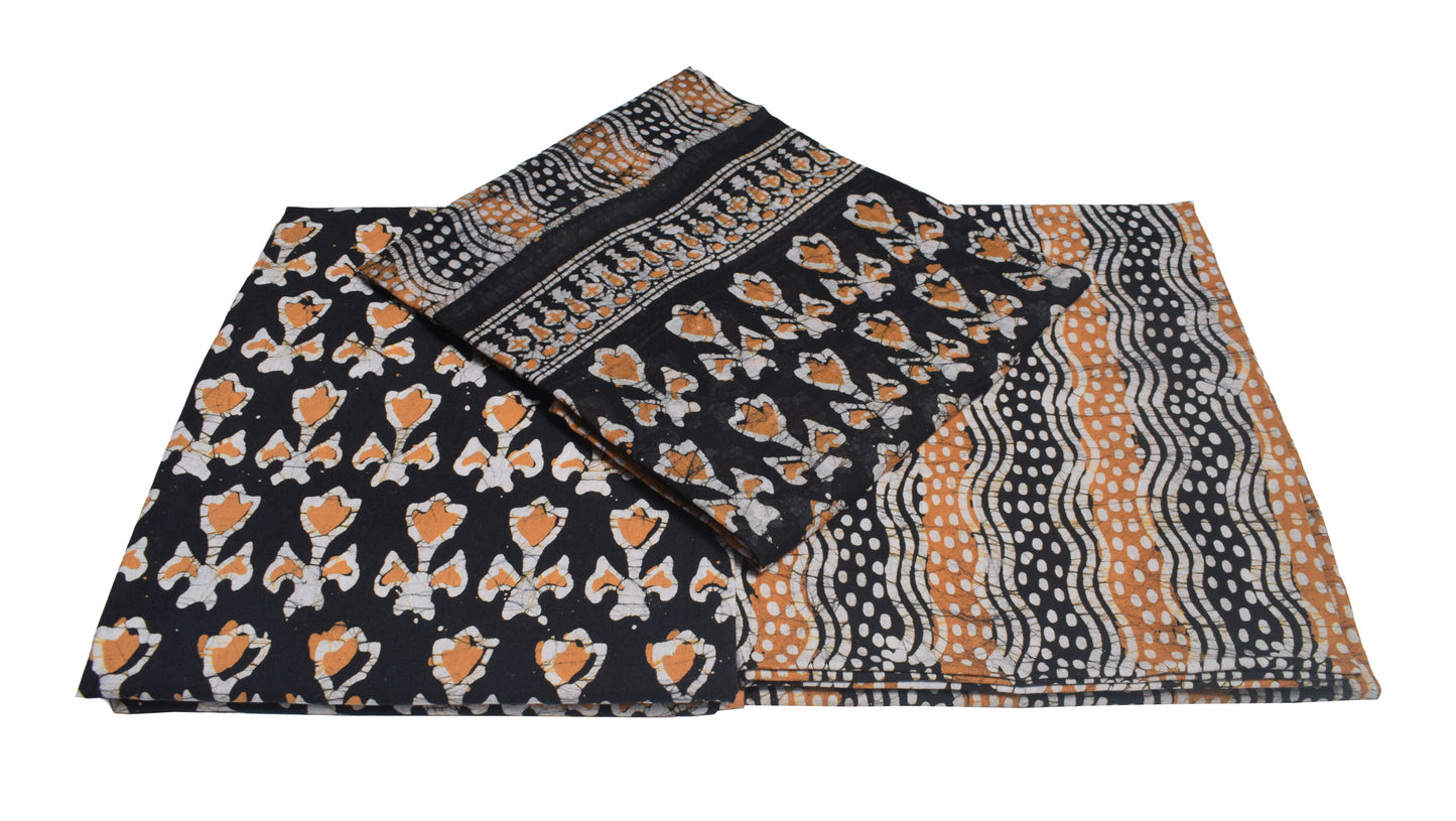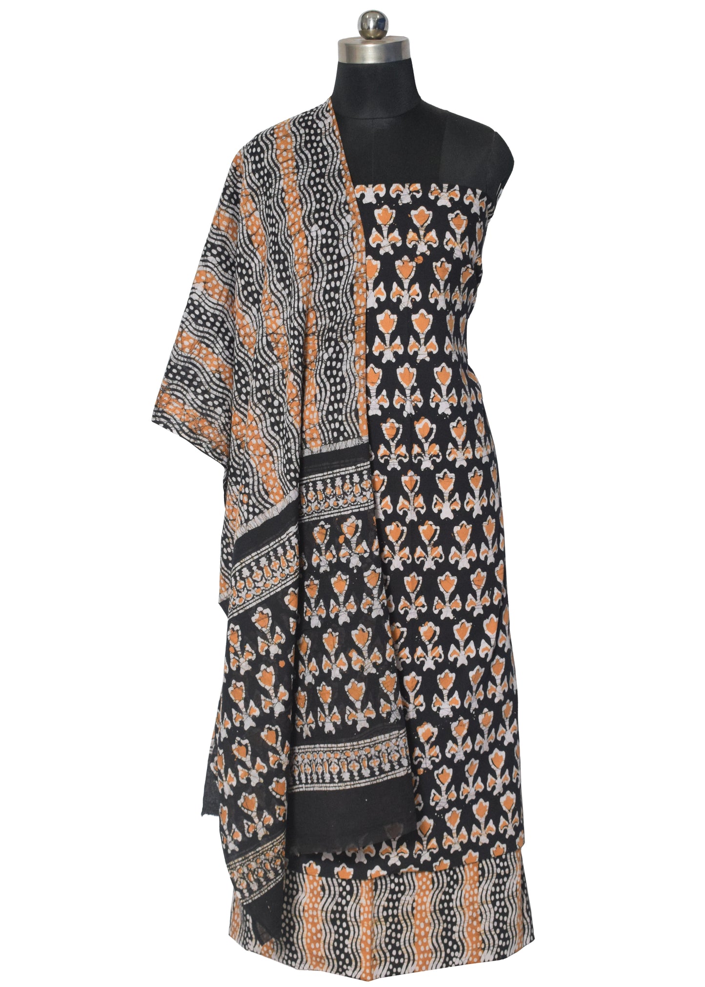 Wax Batik Cotton Three Colour Full Printed Hand Block Print Dress Material with 44 Inch wide Dupatta - 2.5 Mt Top - SKU : RA05401W
