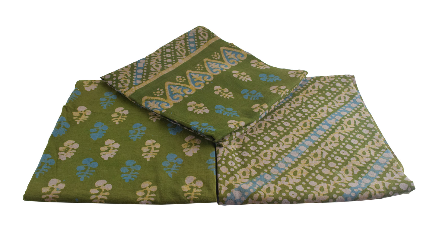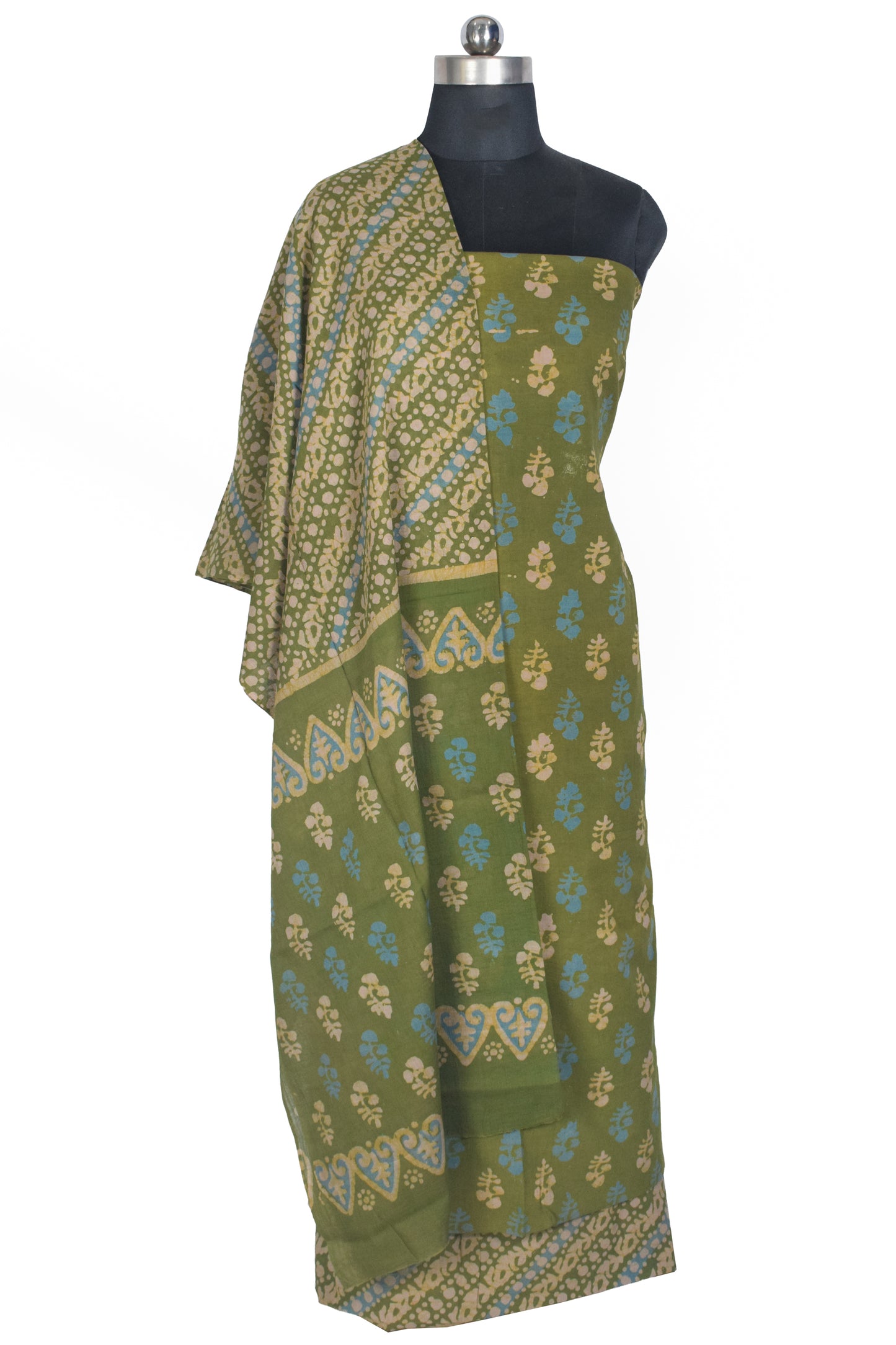 Wax Batik Cotton Three Colour Full Printed Hand Block Print Dress Material with 44 Inch wide Dupatta - 2.5 Mt Top - SKU : RA05401J