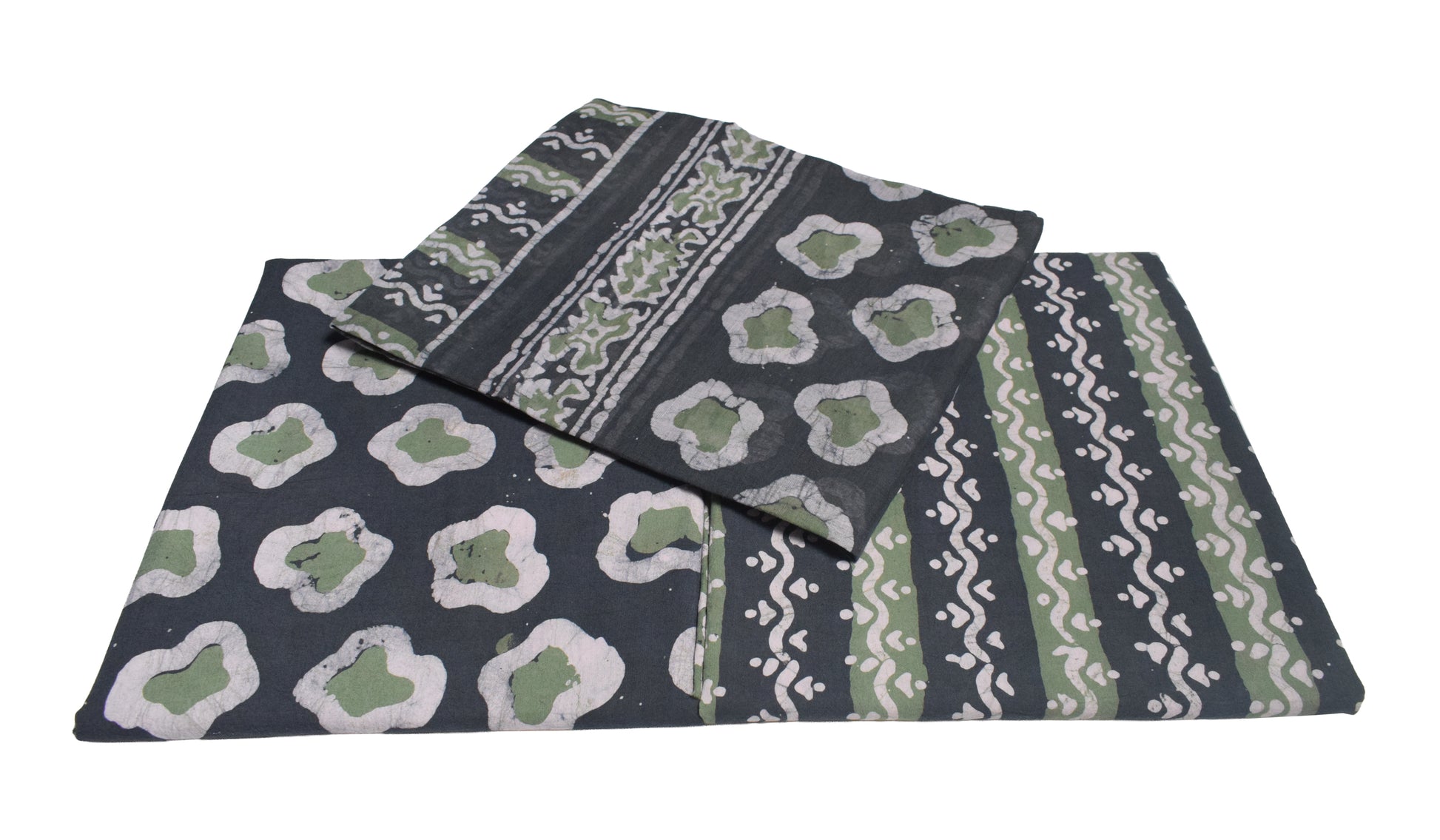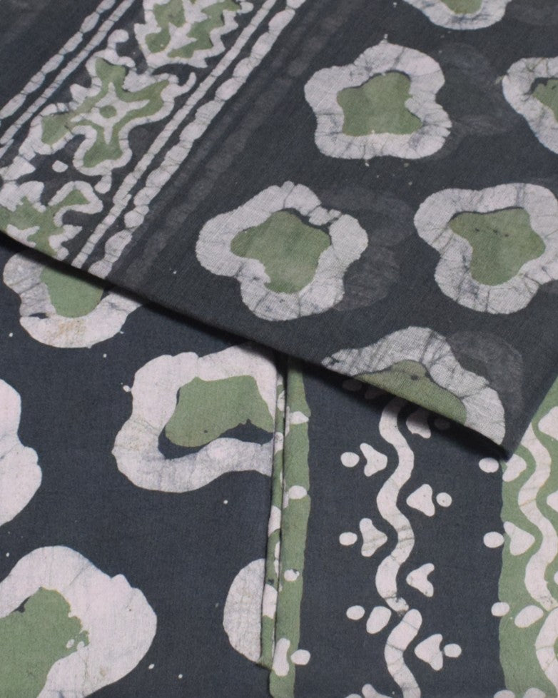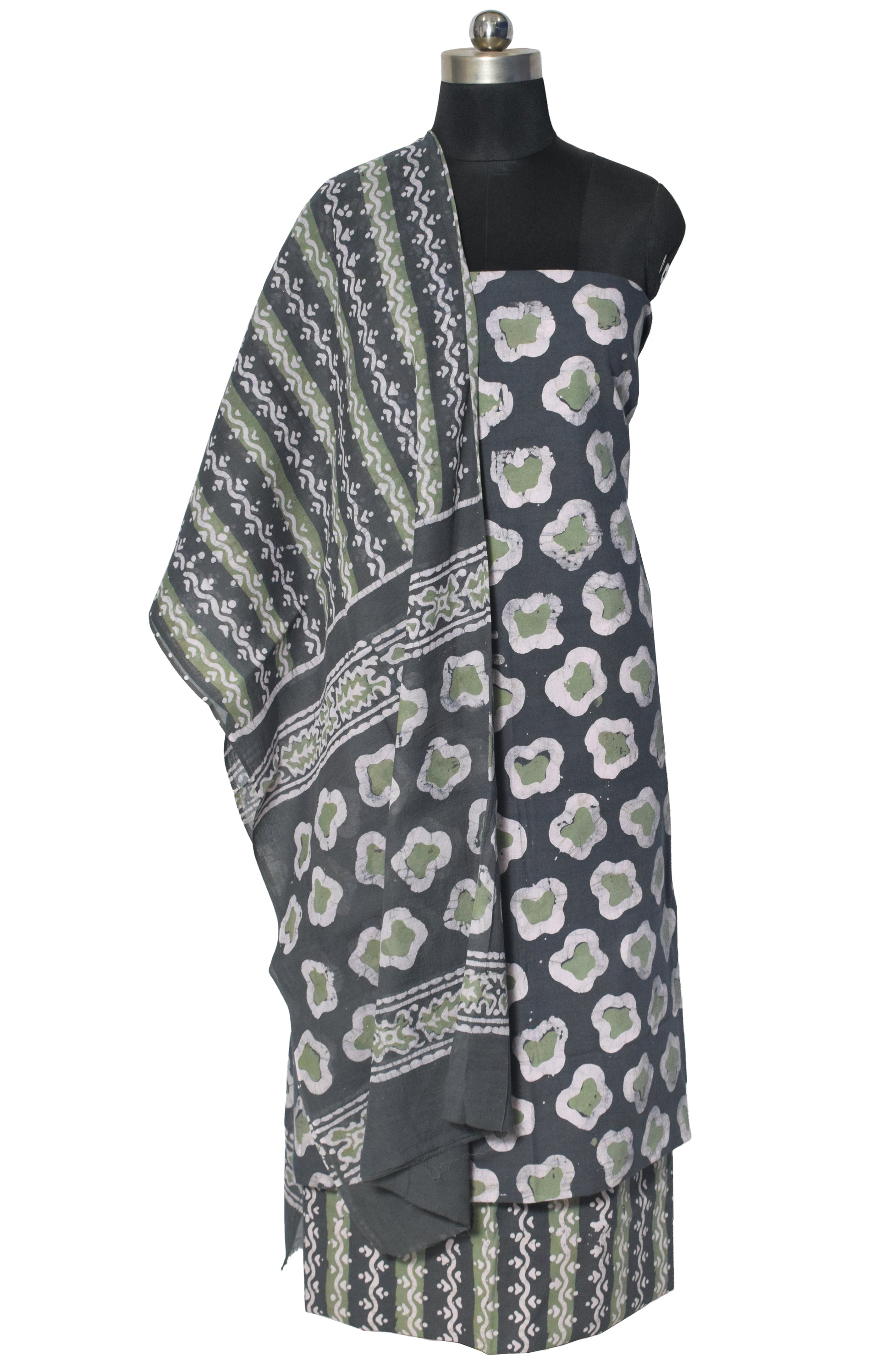 Wax Batik Cotton Three Colour Full Printed Hand Block Print Dress Material with 44 Inch wide Dupatta - 2.5 Mt Top - SKU : RA0540AW
