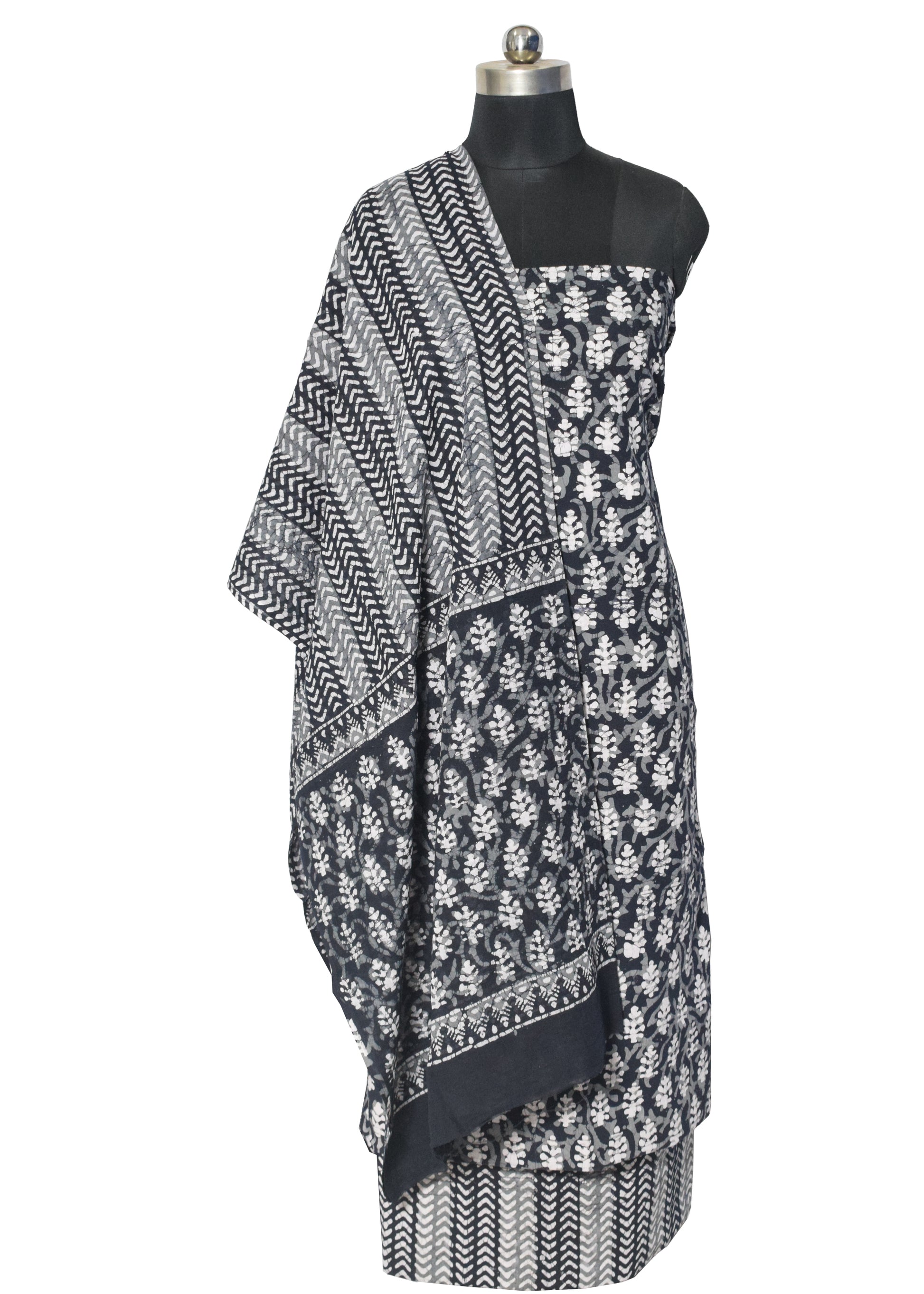 Wax Batik Cotton Three Colour Full Printed Hand Block Print Dress Material with 44 Inch wide Dupatta - 2.5 Mt Top - SKU : RA05401N