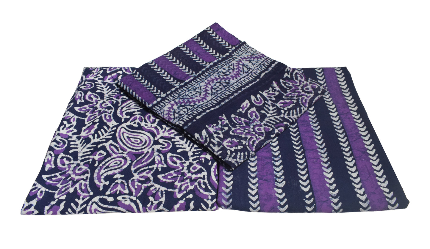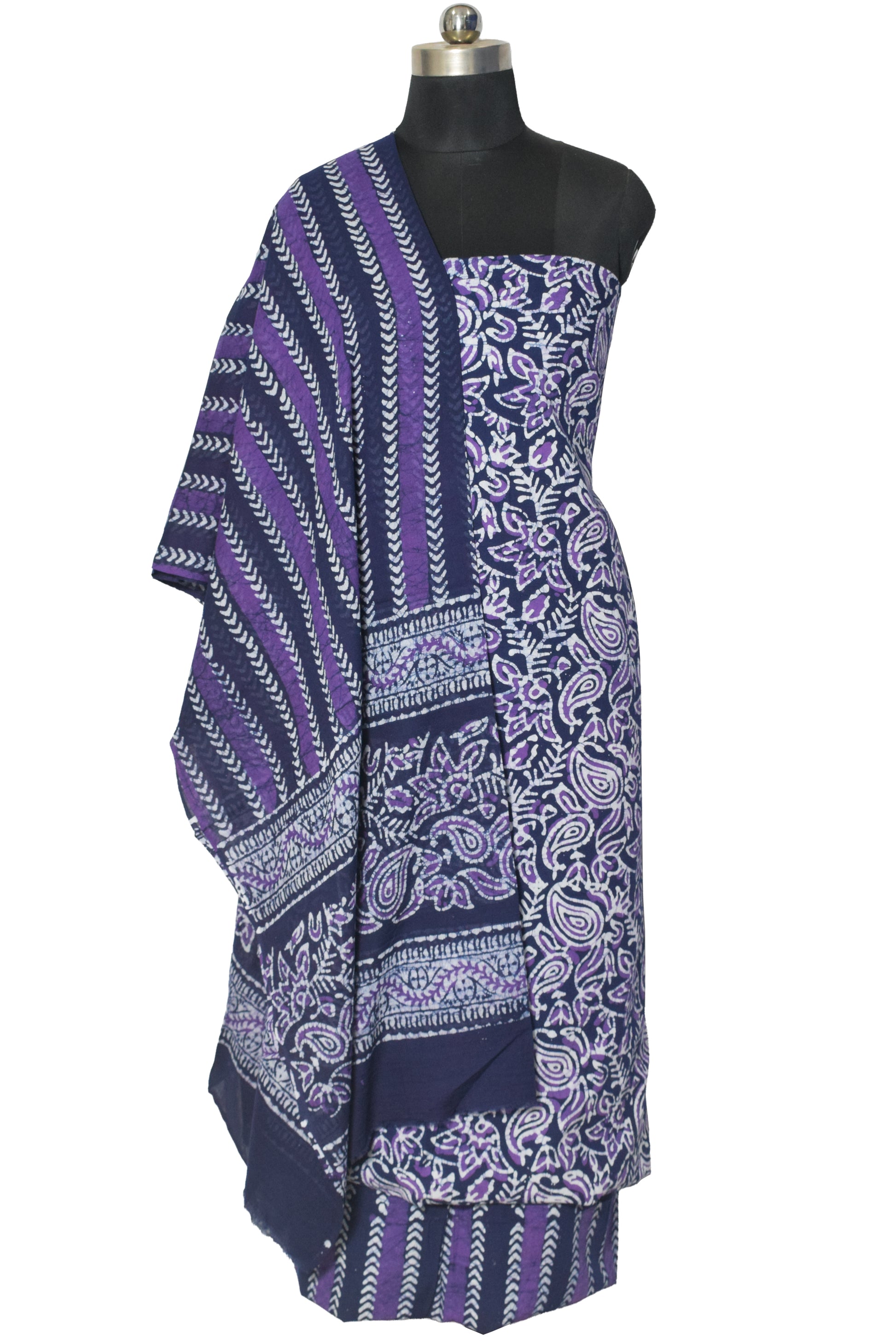 Wax Batik Cotton Three Colour Full Printed Hand Block Print Dress Material with 44 Inch wide Dupatta - 2.5 Mt Top - SKU : RA0540AE