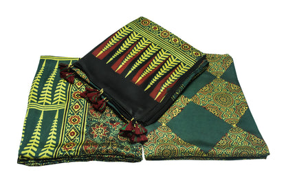 Ajrakh Modal Silk Natural Dye Hand Block Print Dress Material with Full Ajrakh Heavy Dupatta - with Tassels - 2.5 Mt Top - SKU : AI1730BA