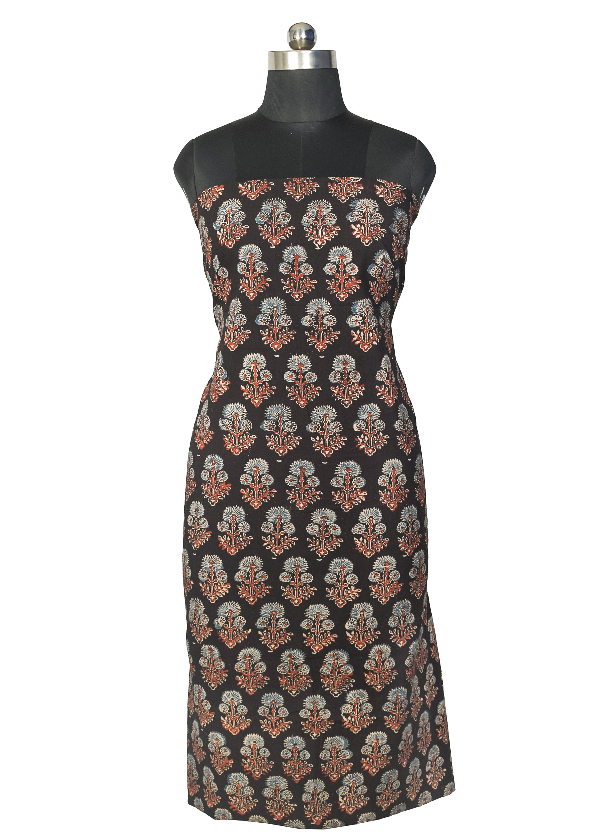 Ajrakh Cotton Natural Dye Hand Block Print Unstitched Kurta Fabric Mtr Length 2.5 Mtr Length - SKU : AI24201N