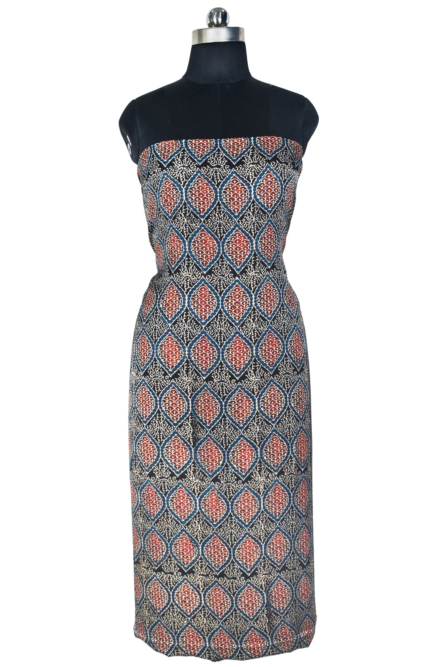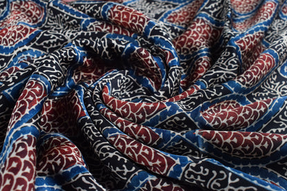 Ajrakh Modal Silk Natural Dye Hand Block Print Unstitched Kurta Fabric 2.5 Mtr Length - SKU : AI22501K