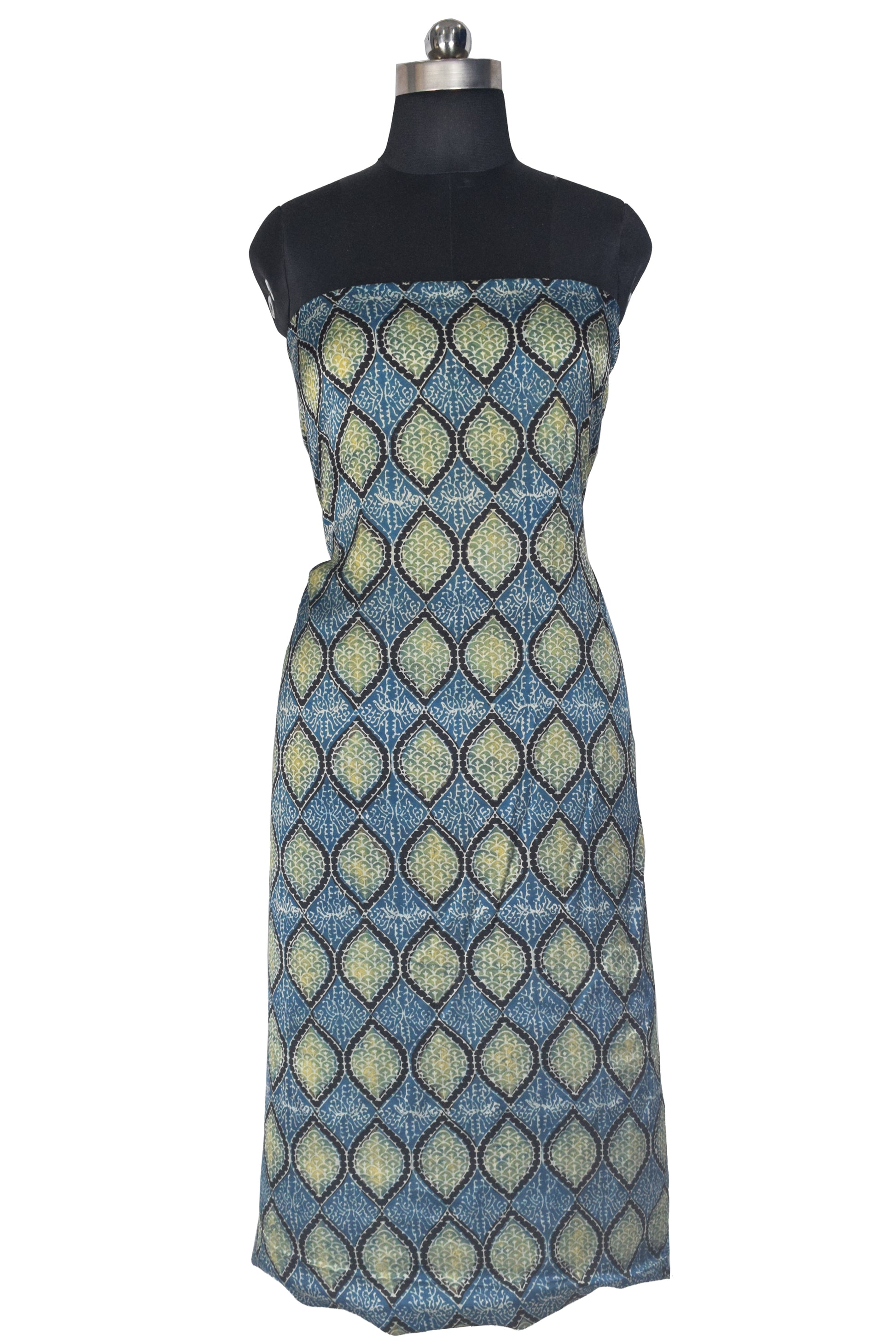 Ajrakh Modal Silk Natural Dye Hand Block Print Unstitched Kurta Fabric 2.5 Mtr Length - SKU : AI22501O