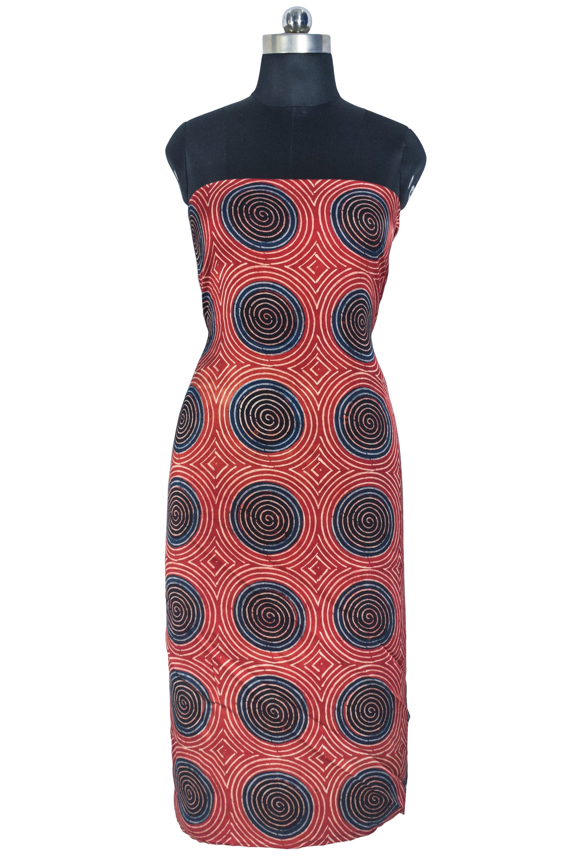 Ajrakh Modal Silk Natural Dye Hand Block Print Unstitched Kurta Fabric 2.5 Mtr Length - SKU : AI22501B