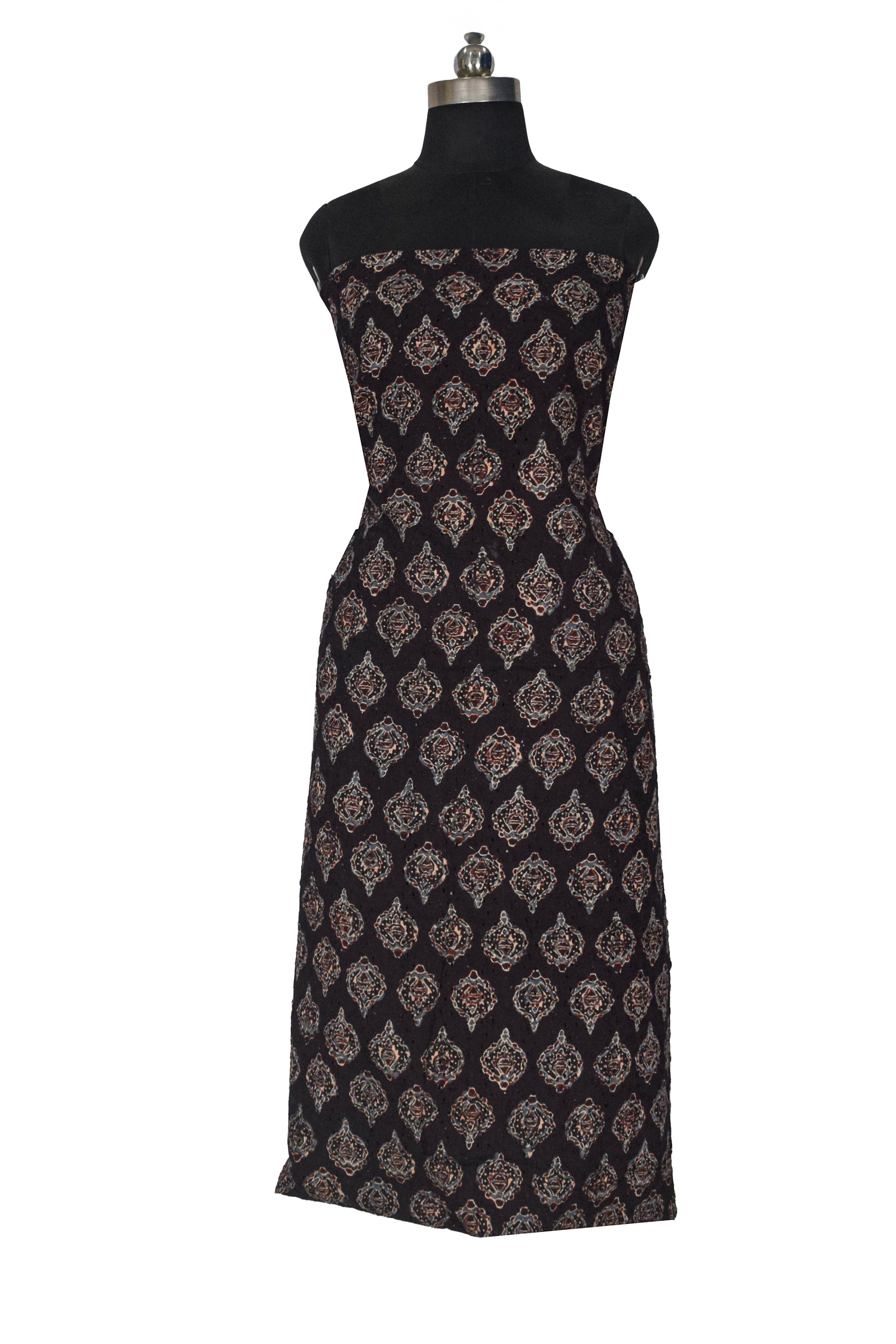 Ajrakh Cotton Natural Dye Hakoba Design Hand Block Print Unstitched Kurta Fabric Mtr Length 2.5 Mtr Length - SKU : AI06A04D