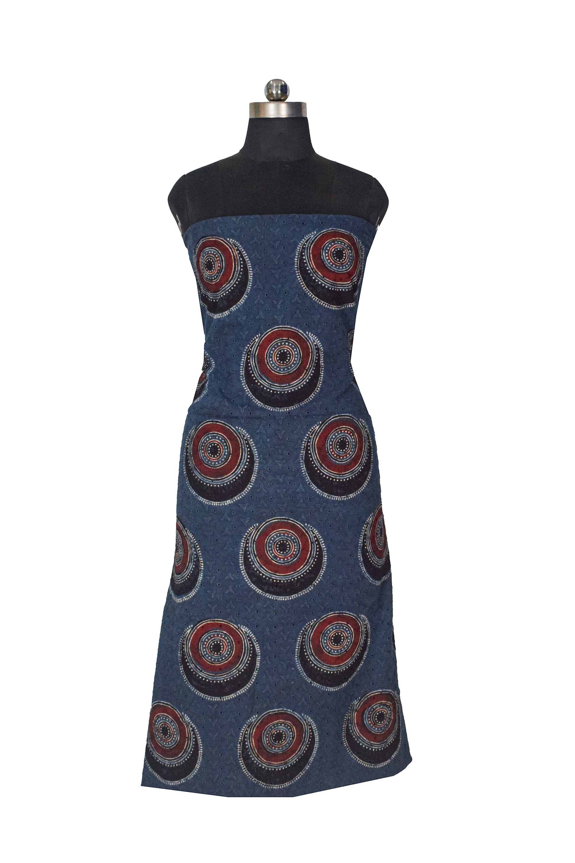 Ajrakh Cotton Natural Dye Hakoba Design Hand Block Print Unstitched Kurta Fabric Mtr Length 1.25 Mtr Length - SKU : MK12904D