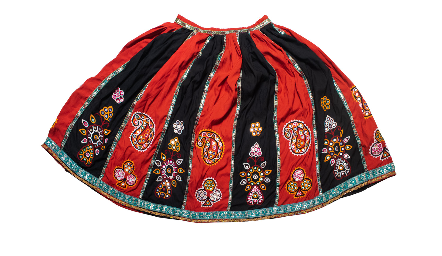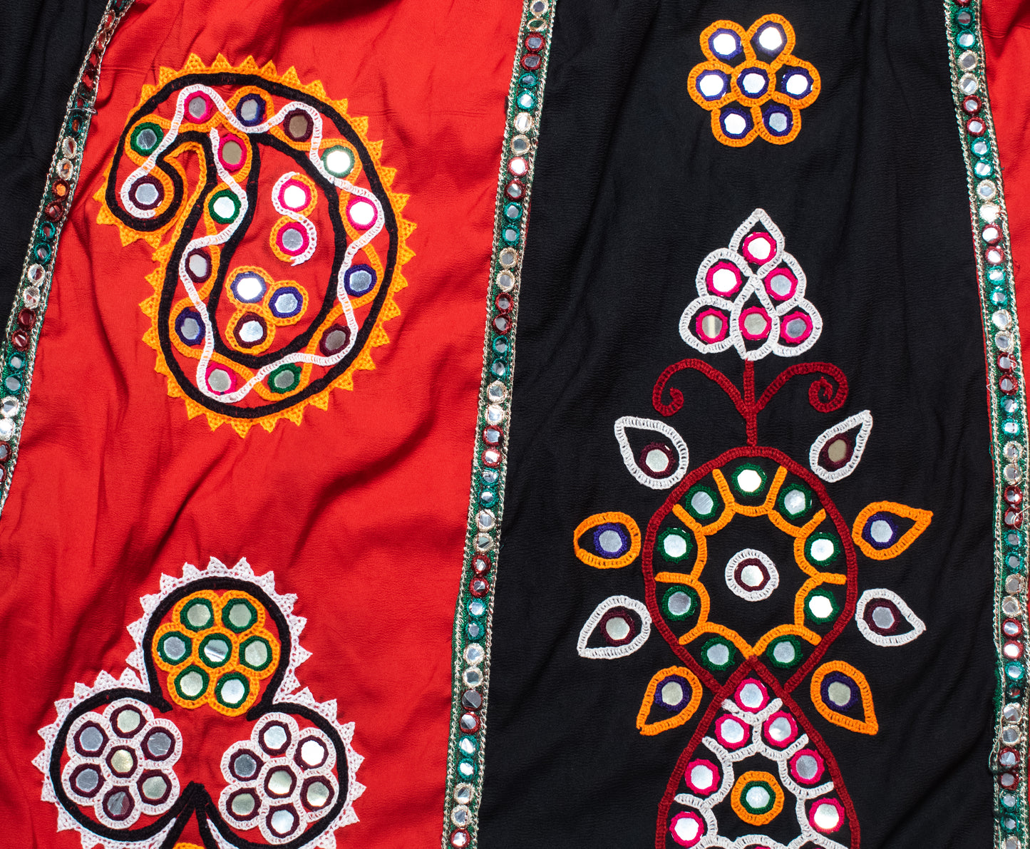 Ahir Work Polyester Fine Mirror and Threadwork Embroidery Garba Skirt - SKU: SD10802A