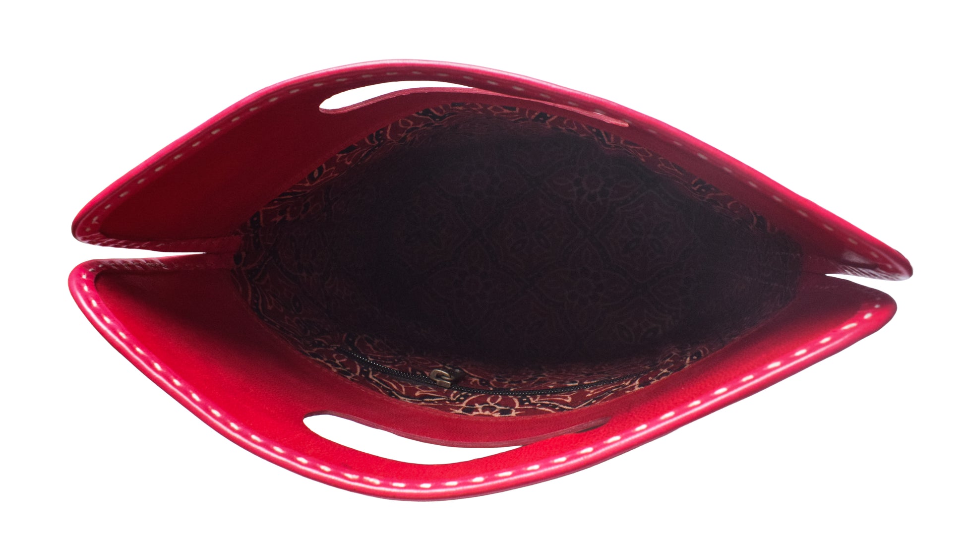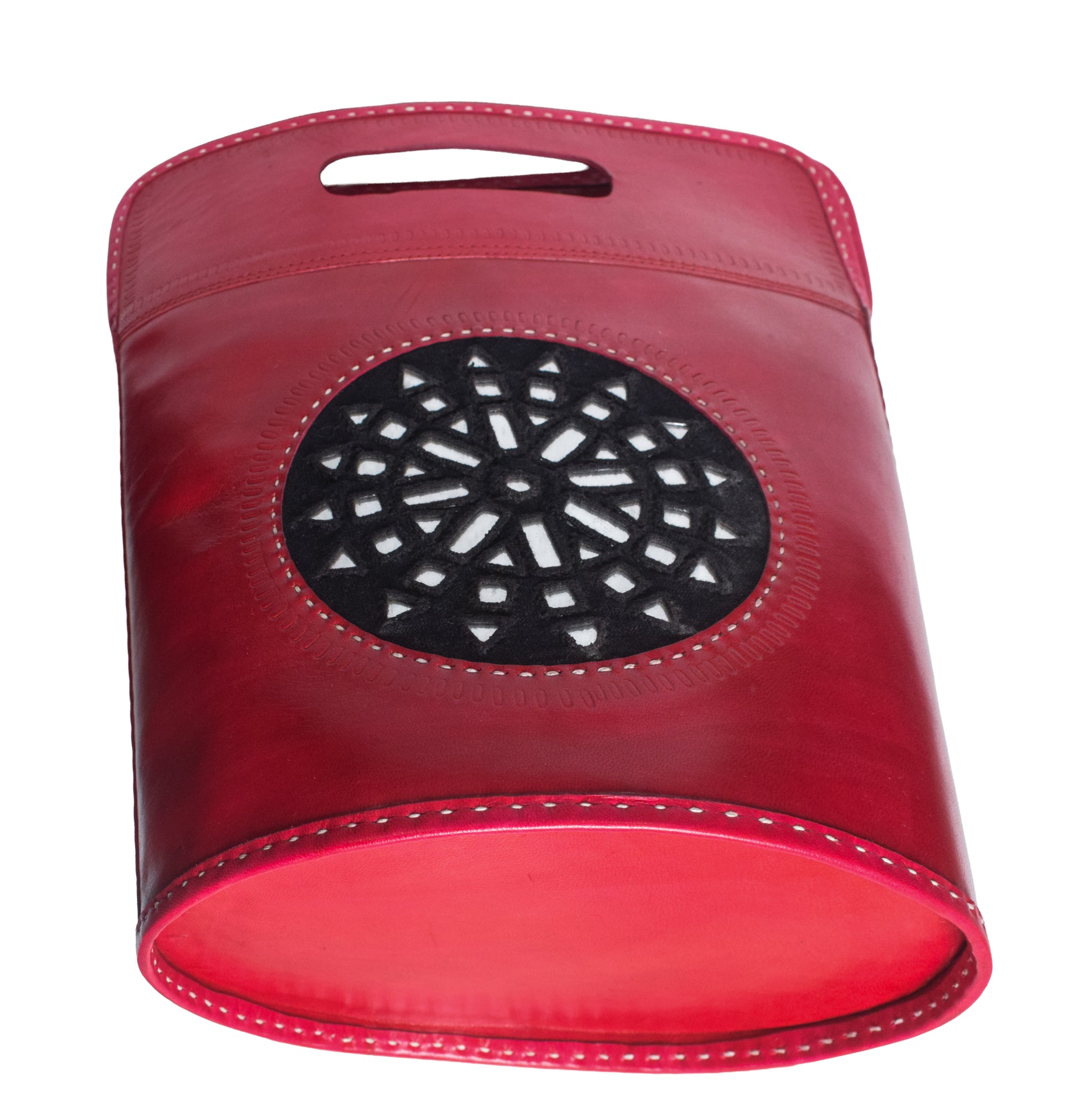 Leather Craft Punch Work Pure Leather Mirrorwork Handbags - 36 cms Length - SKU : AB11601A