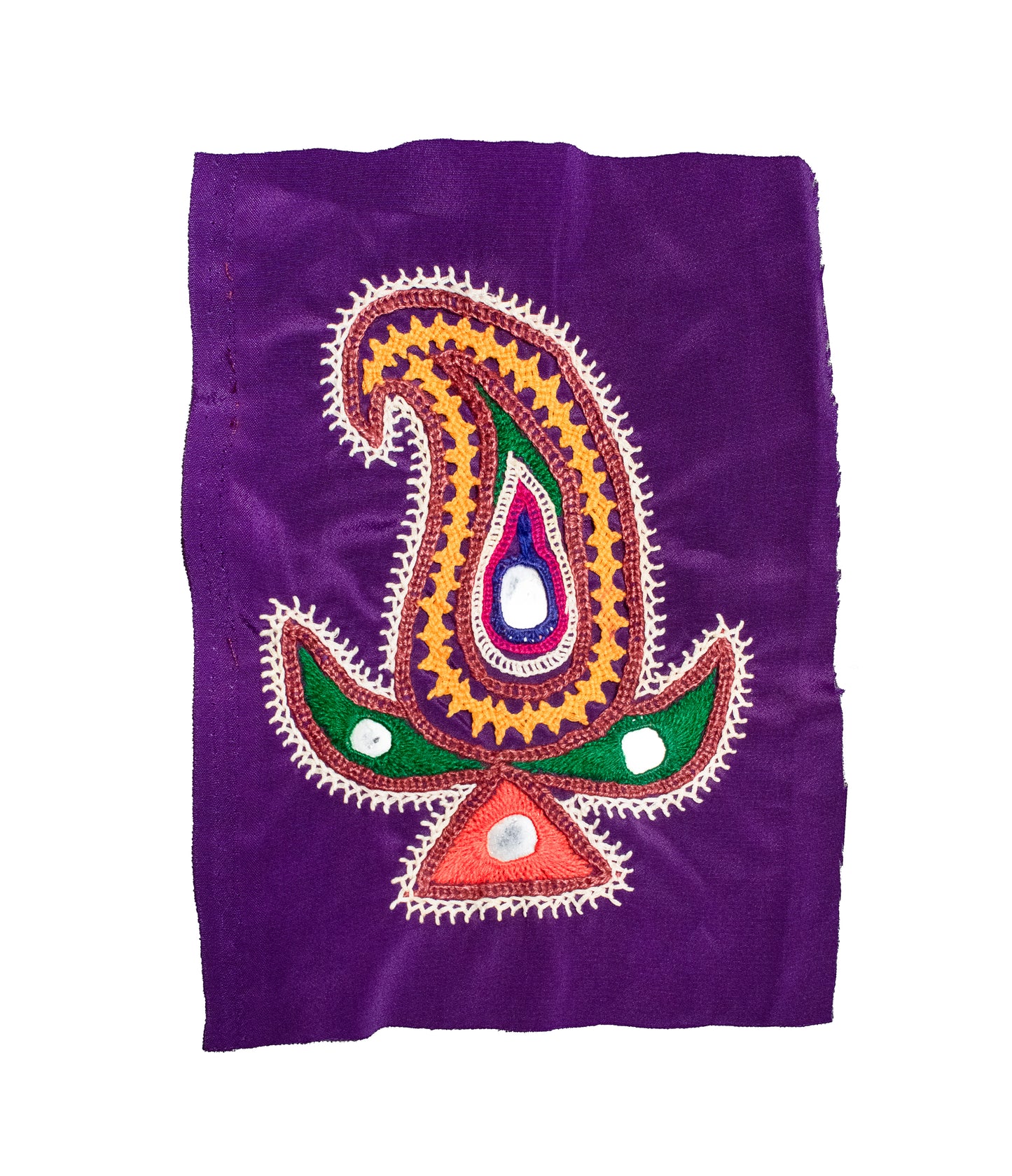 Ahir Work Cotton Hand Embroidered Mirror Work Handwork Patch - 14 cms Length - SKU : VA09905J