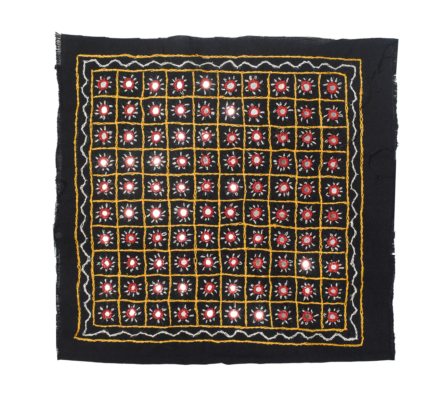 Mirror Work Cotton Hand Embroidered Handwork Patch - 24 cms Length - SKU : SH04302A