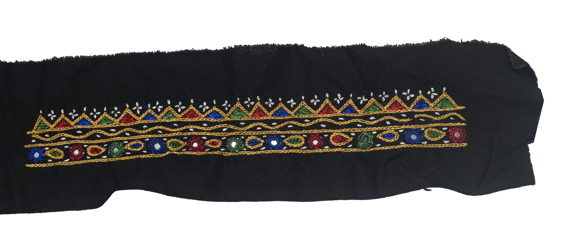 Mutva Work Cotton Hand Embroidered Fine Mirrorwork Handwork Patch - 21 cms Length - SKU : GG10926A