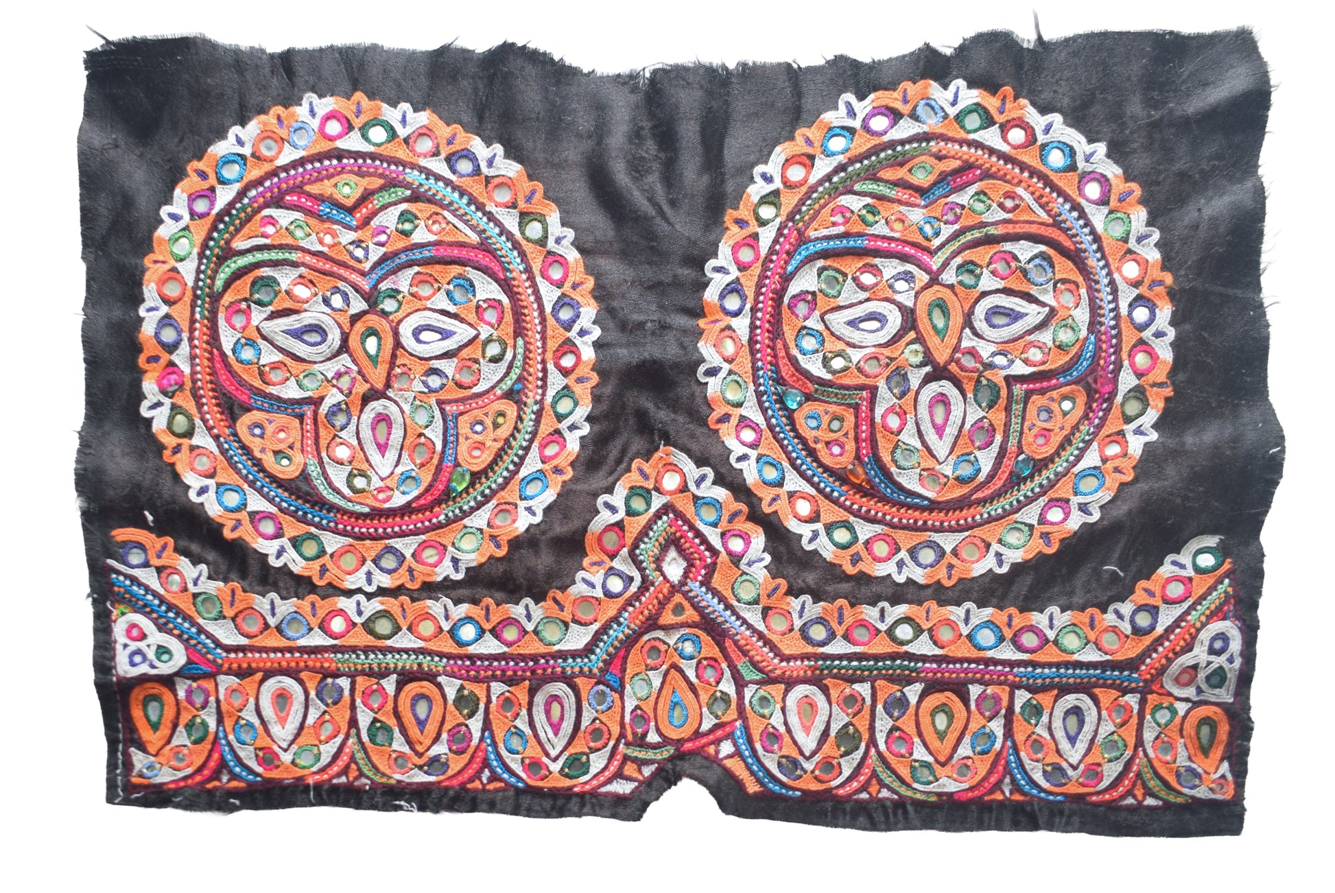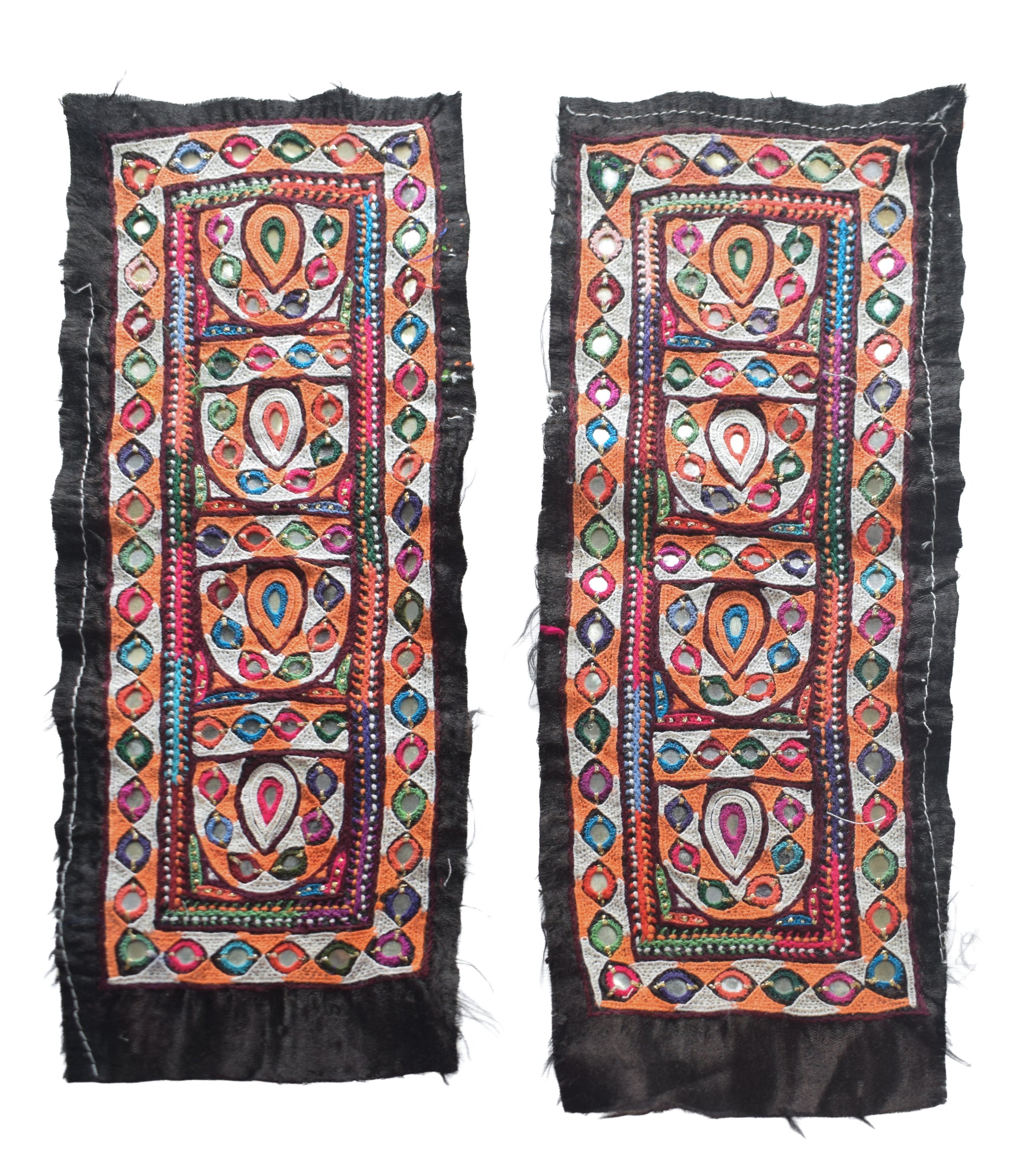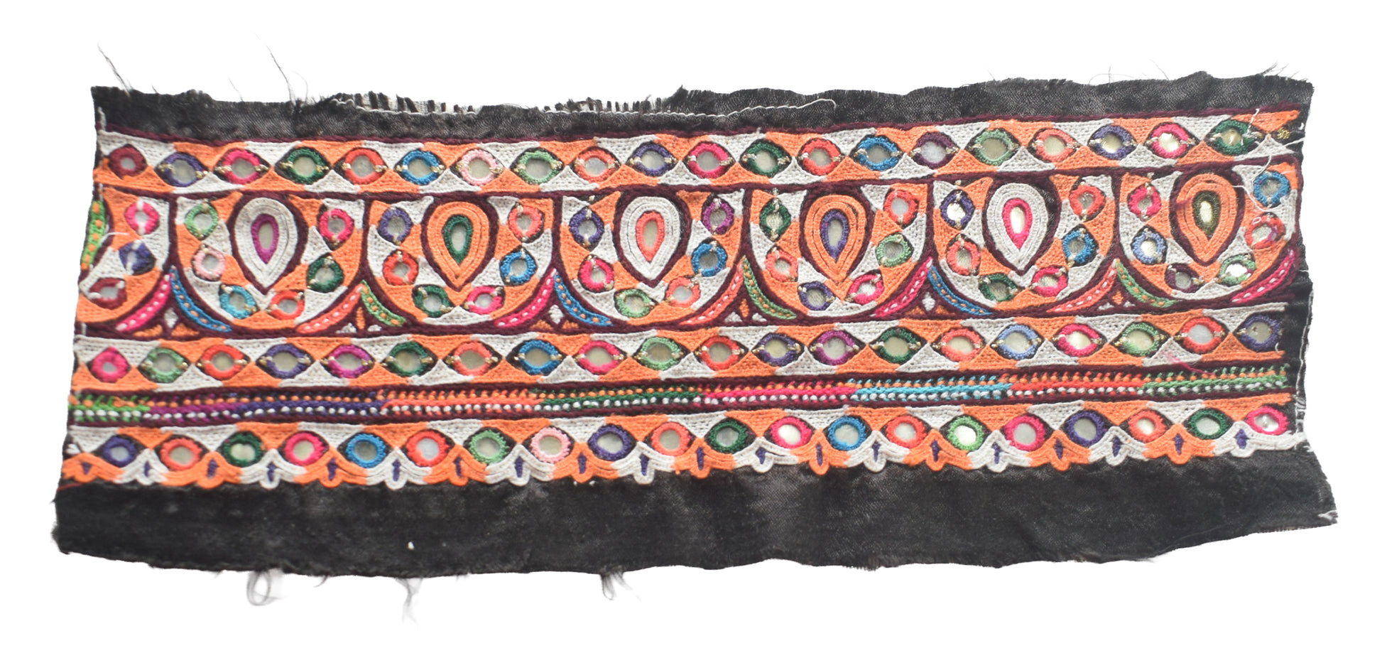 Ahir Work Silk Hand Embroidered Mirror Work Handwork Patch - 24 cms Length - SKU : VA19901N