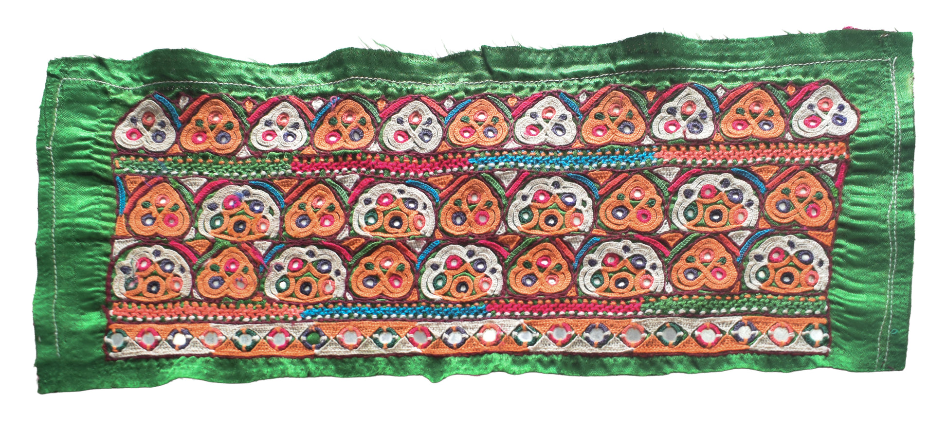 Ahir Work Silk Hand Embroidered Mirror Work Handwork Patch - 24 cms Length - SKU : VA19901E