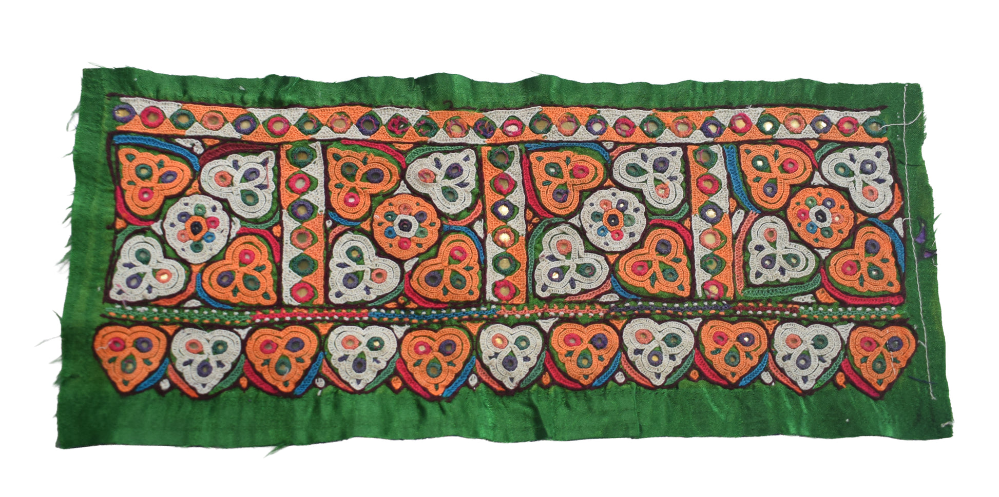 Ahir Work Silk Hand Embroidered Mirror Work Handwork Patch - 24 cms Length - SKU : VA19901M