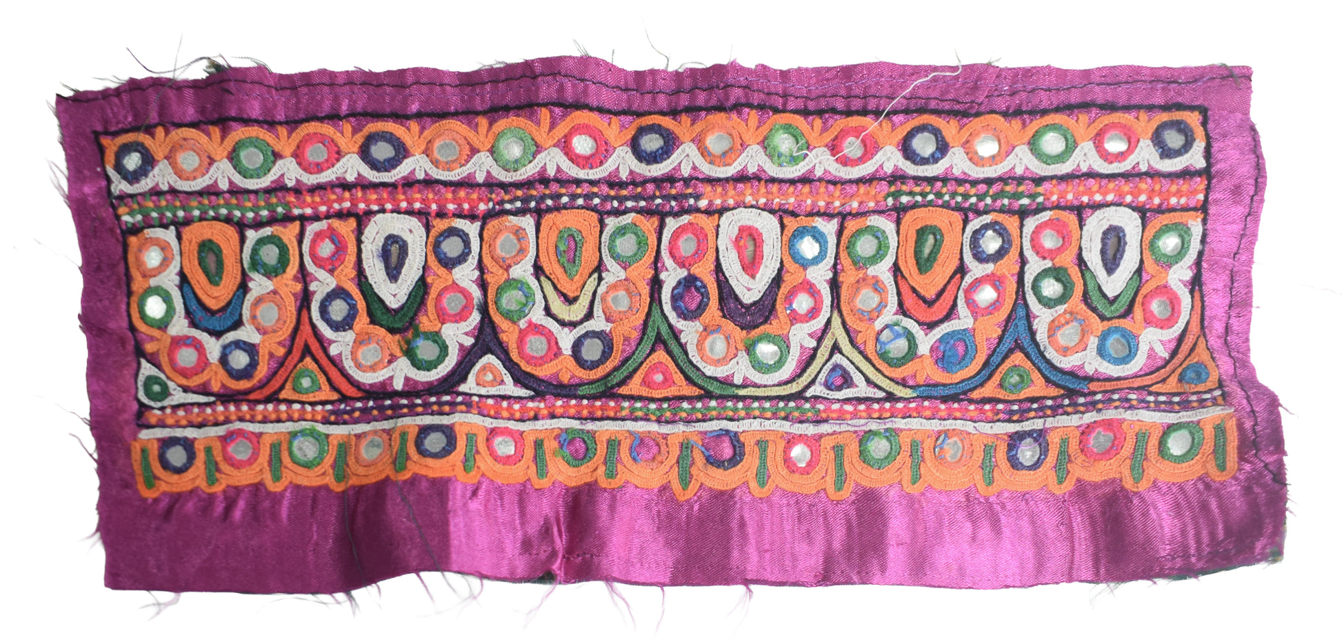 Ahir Work Silk Hand Embroidered Mirror Work Handwork Patch - 24 cms Length - SKU : VA19901L