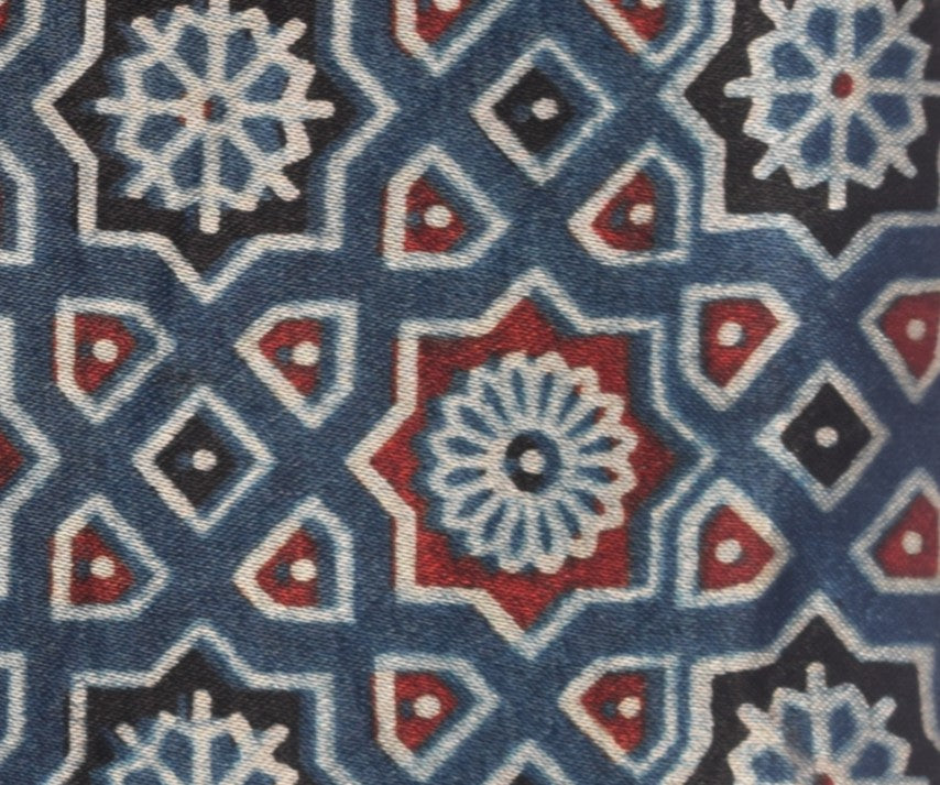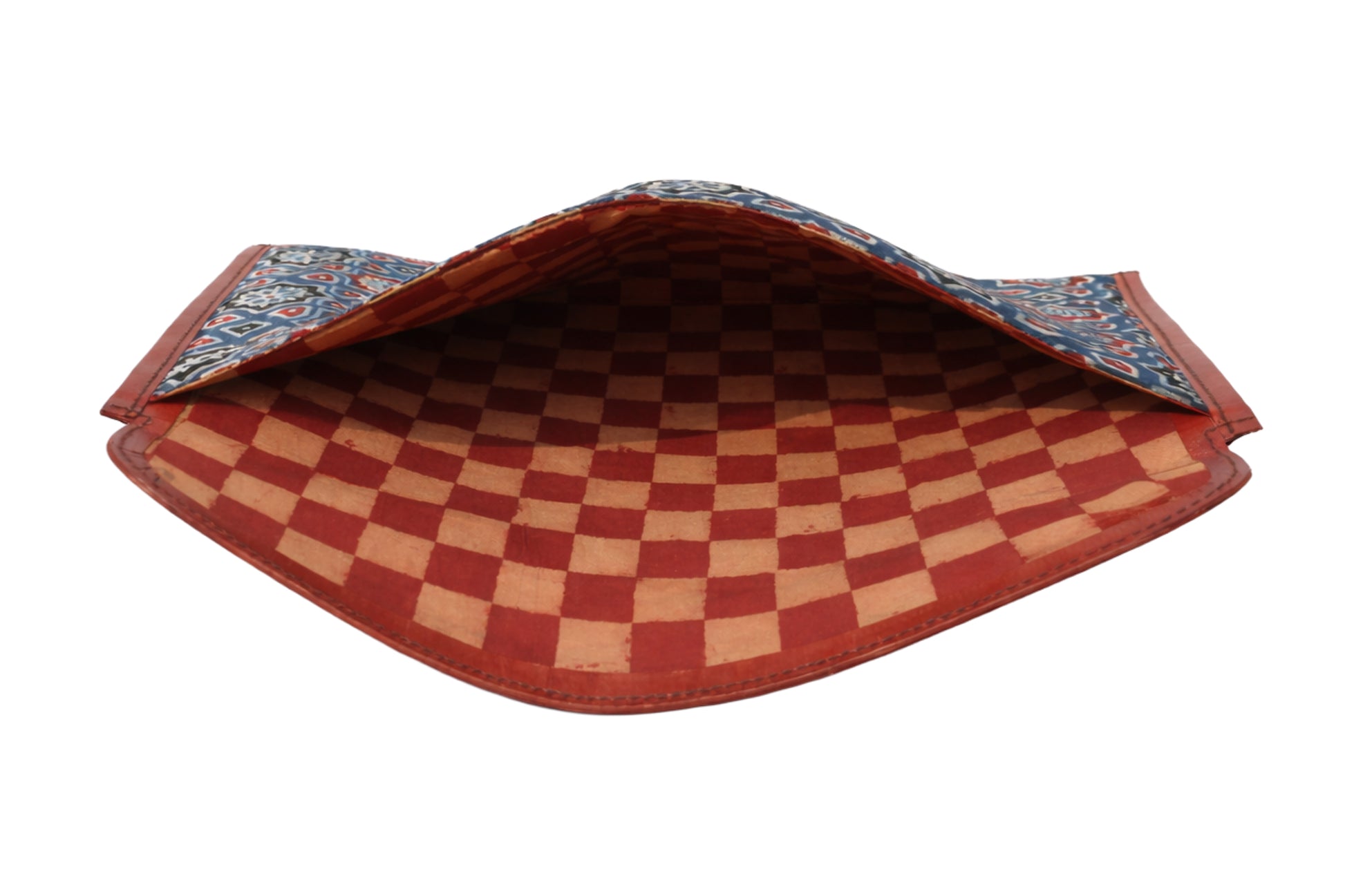 Ajrakh Pure Leather Leathercraft Hand Made Ipad Sleeve with Ajrakh Natural Dyed Mashru Silk Body - 32 cms Length - SKU : AB02101B