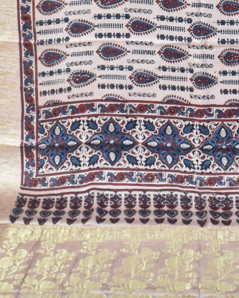 Ajrakh Modal Silk Natural Dye Designer Hand Block Print Saree With Full nakshi Border & Pallu - With Blouse Piece - 5.5 Mtr Length - SKU : IA06501I