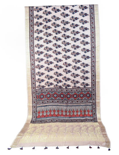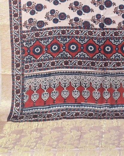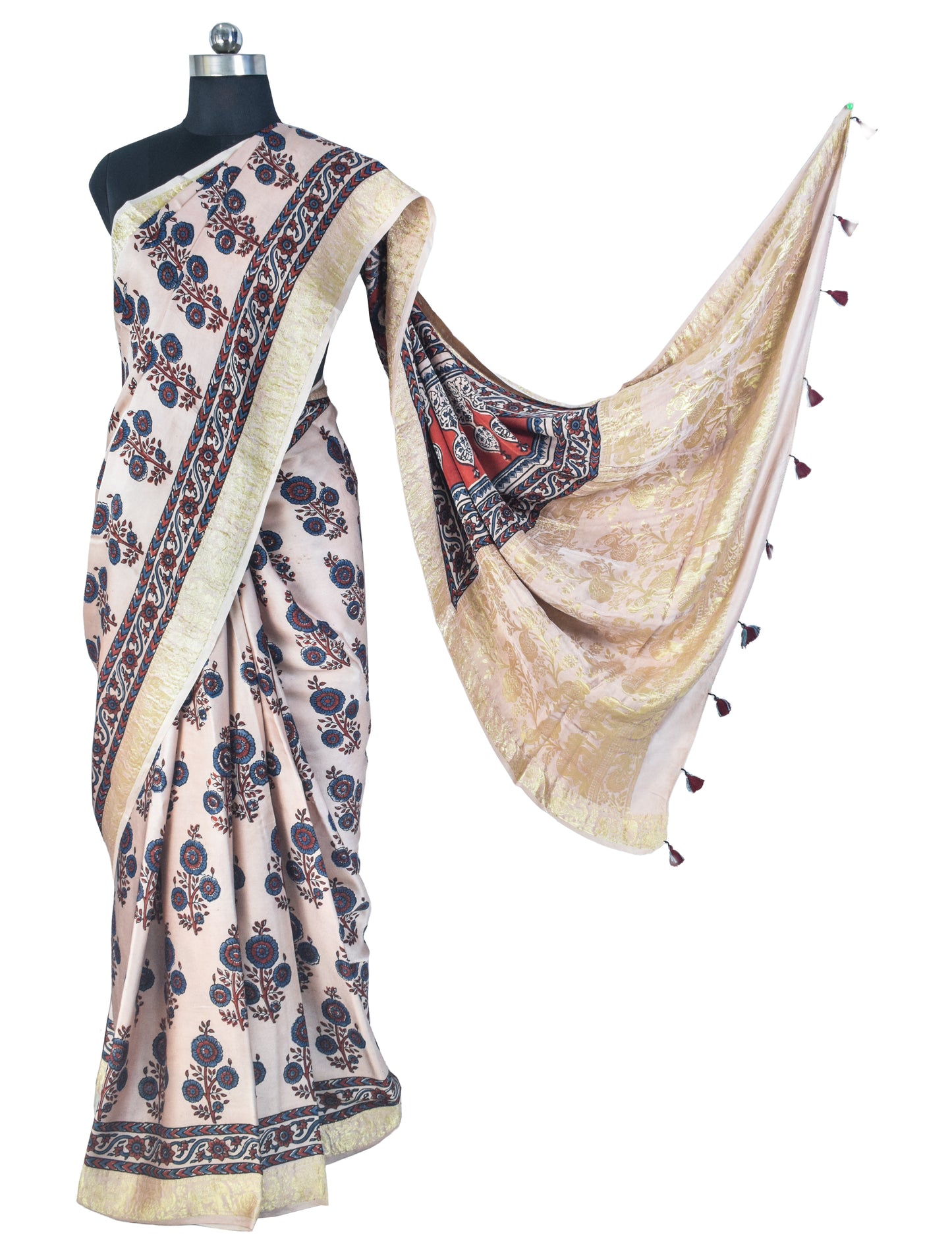 Ajrakh Modal Silk Natural Dye Designer Hand Block Print Saree With Full nakshi Border & Pallu - With Blouse Piece - 5.5 Mtr Length - SKU : IA06501K