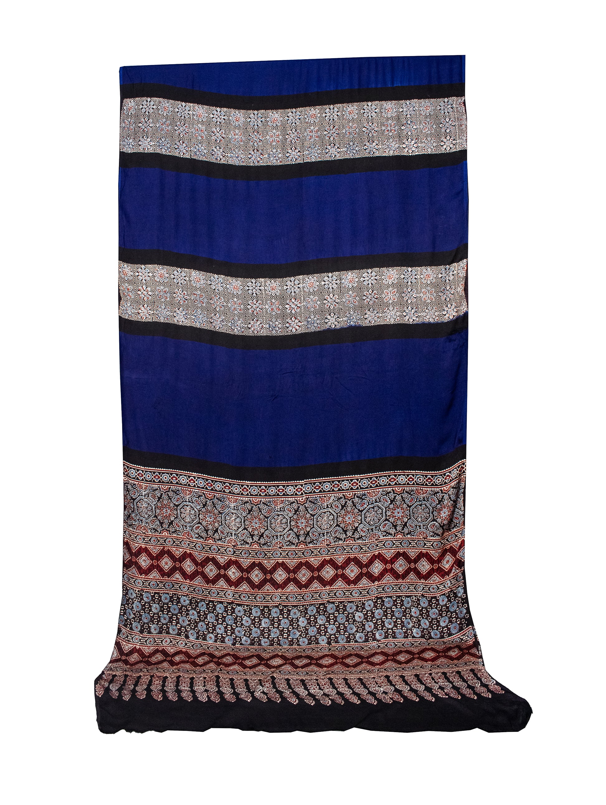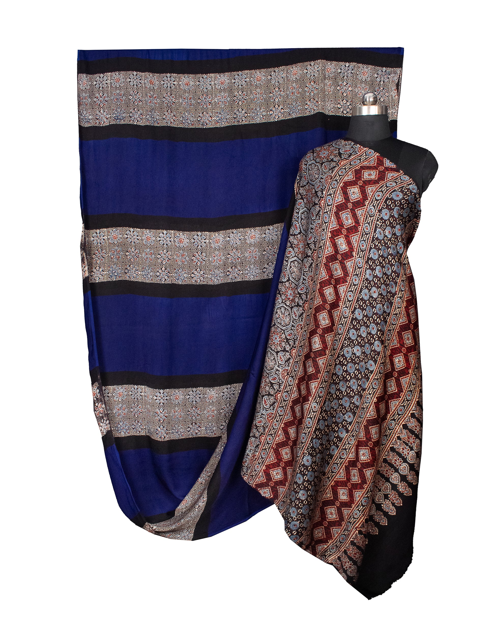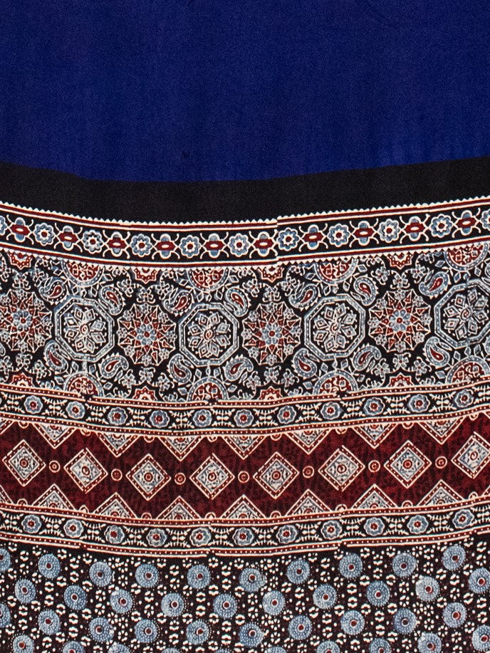 Plain Dyeing Modal Silk Part Natural Dye Half Ajrakh Hand Block Print Saree with Blouse Piece - 5.5 Mtr Length - SKU : 0095-BLBK